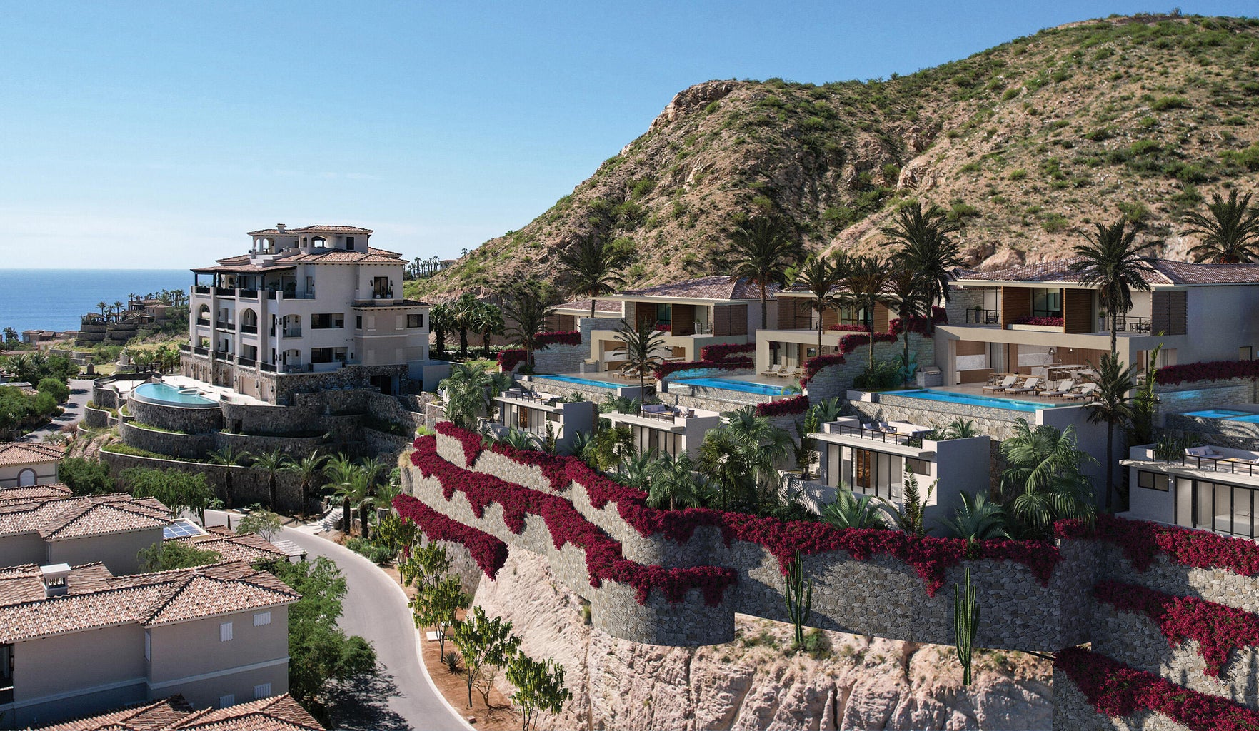 There are six individual homes overlooking the Blue Flag-certified Palmilla Bay beach, the San Jose coastline, and the twinkling city lights beyond.