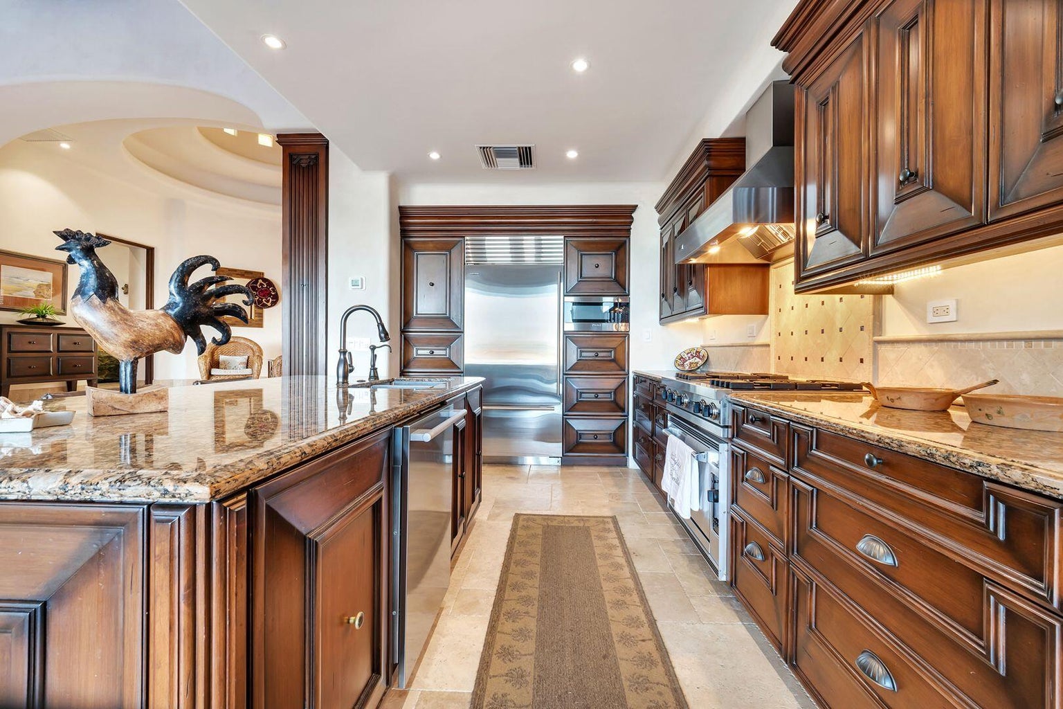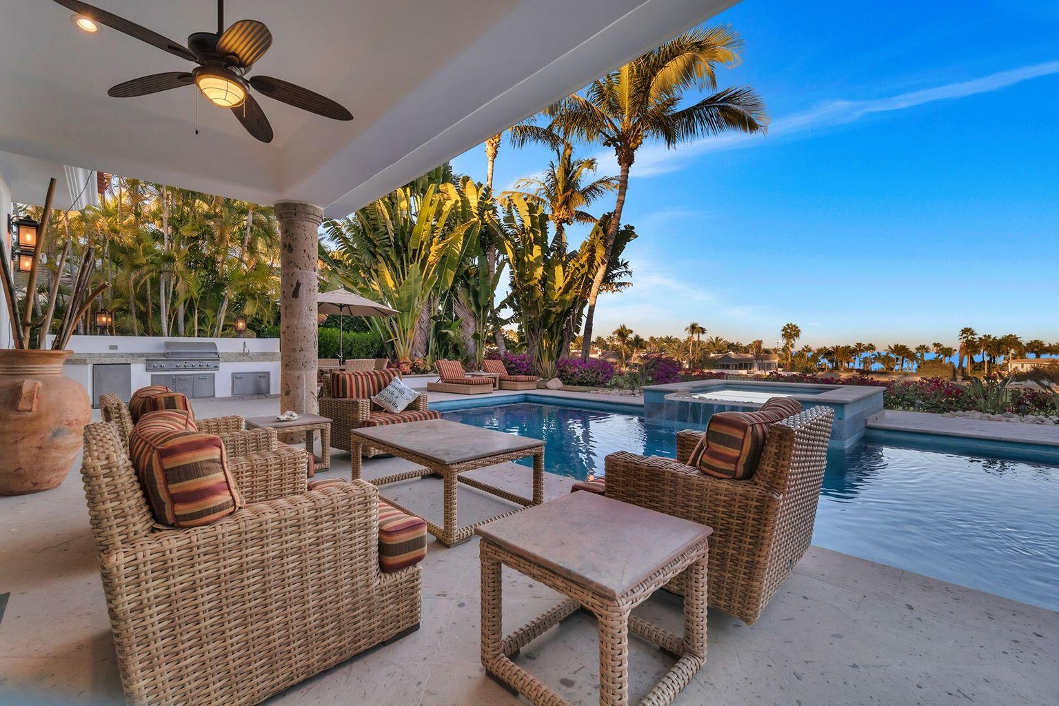 Casa Oceano Altas #11: A single-story ocean-view home located on the 5th fairway on the ocean side of Palmilla. Fully furnished and in move-in condition. Two master suites, one guest bedroom, and an office. High-end appliances (Sub-Zero and Viking), remodeled with custom finishes, hurricane protection, an attached 2-car garage, fire pit, built-in BBQ/outdoor kitchen, living and dining area, Jacuzzi & heated pool. Beautifully landscaped with a private gate to the fairway.