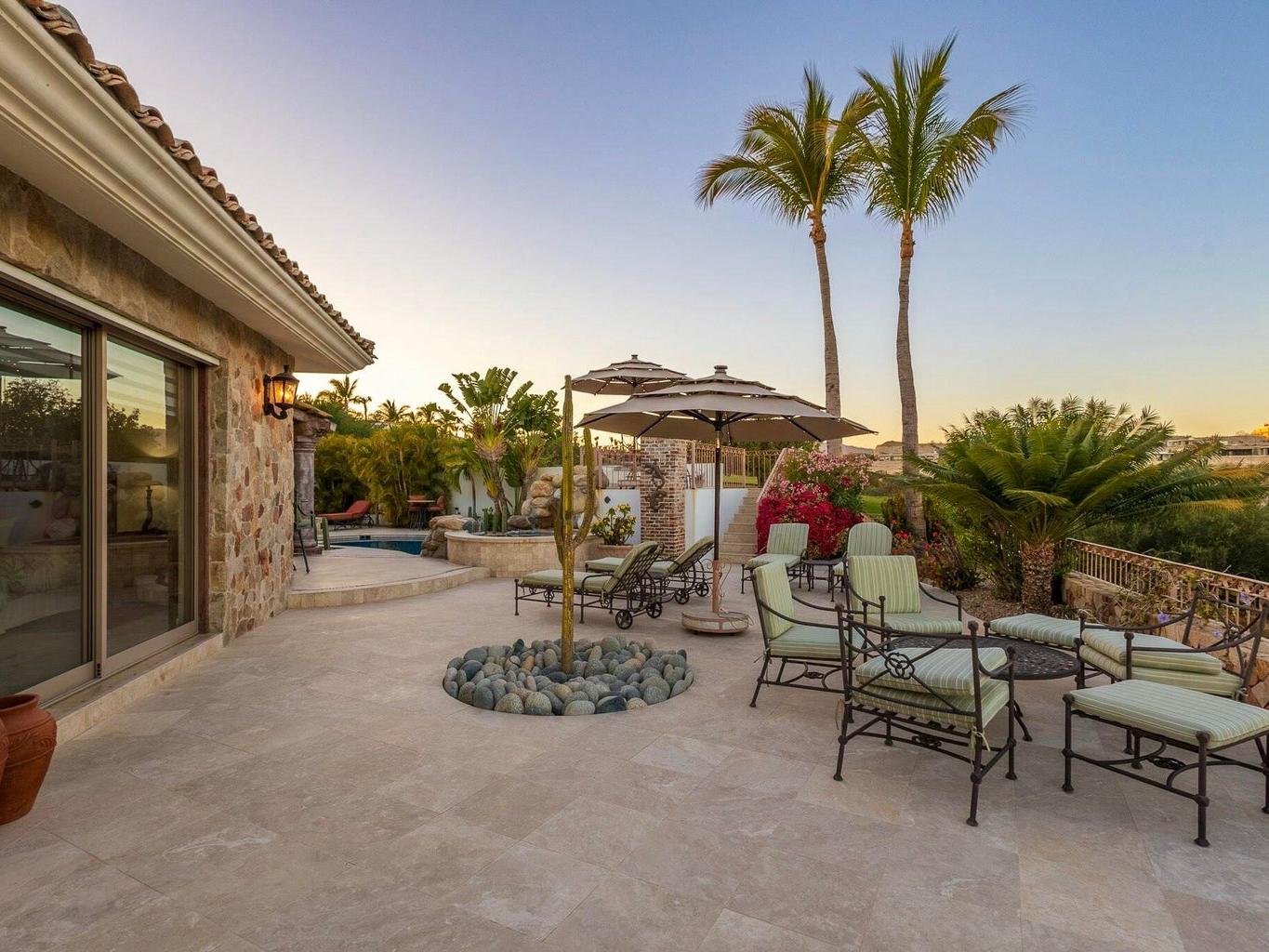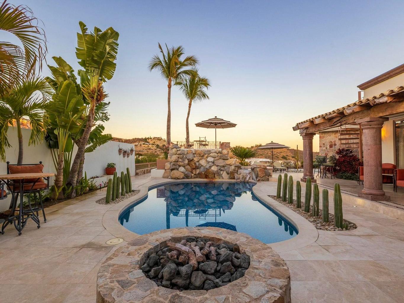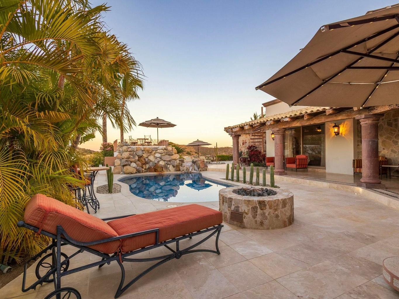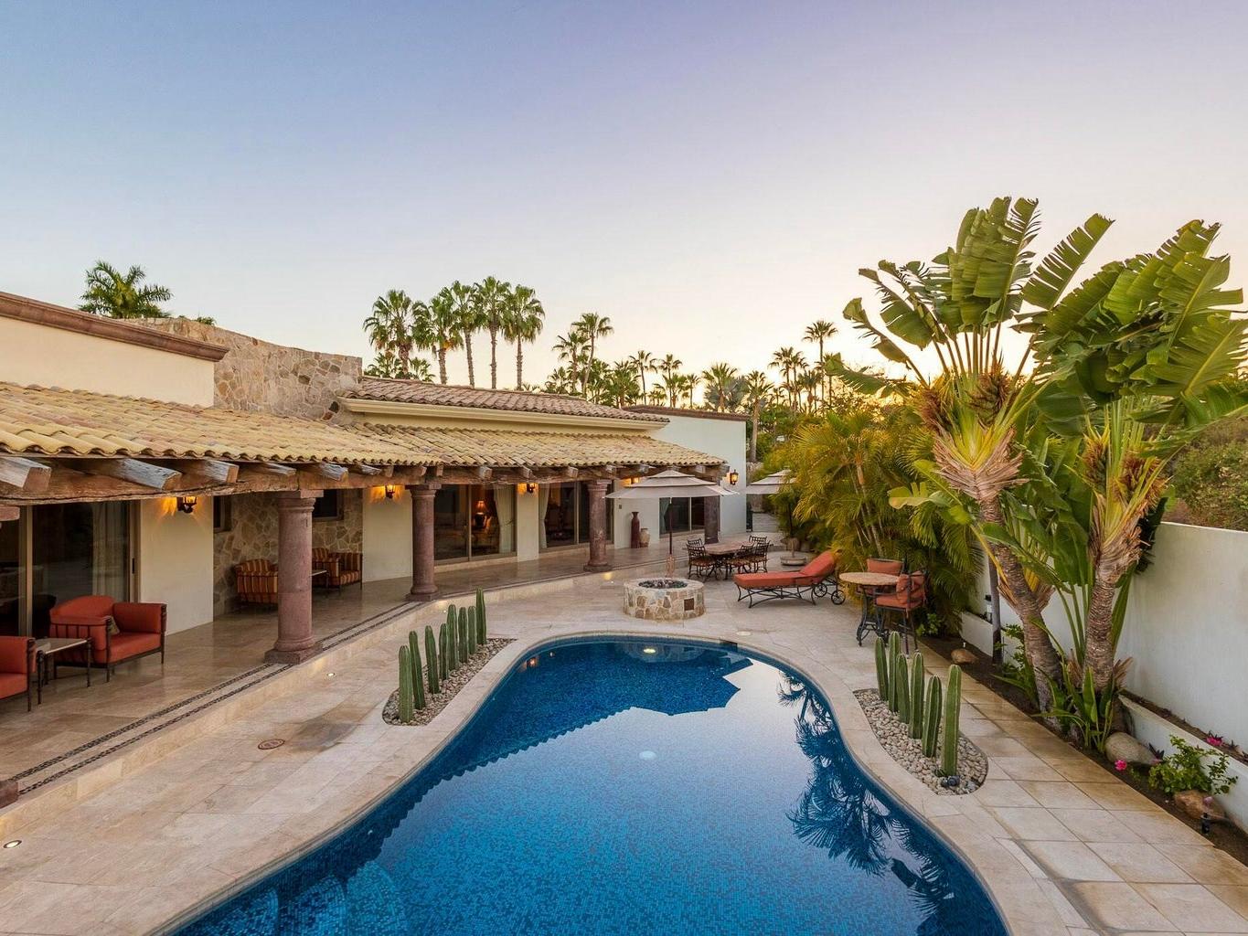 Fairway front home located on one of the most coveted streets in Palmilla Estates, this beautiful ranch-style, single-level home offers unparalleled privacy and breathtaking views. Perched above the canyon with direct sightlines down to the ocean, this property seamlessly blends luxury, comfort, and tranquility. Situated on a spacious and private lot, the home features a detached casita, a guest bedroom inside, and a primary suite with stunning ocean views. A fully equipped gym provides the flexibility to be converted into a fourth bedroom if desired. Outside, a large pool, fire pit and expansive patio are surrounded by a beautifully designed desert landscape, creating a serene and peaceful retreat.