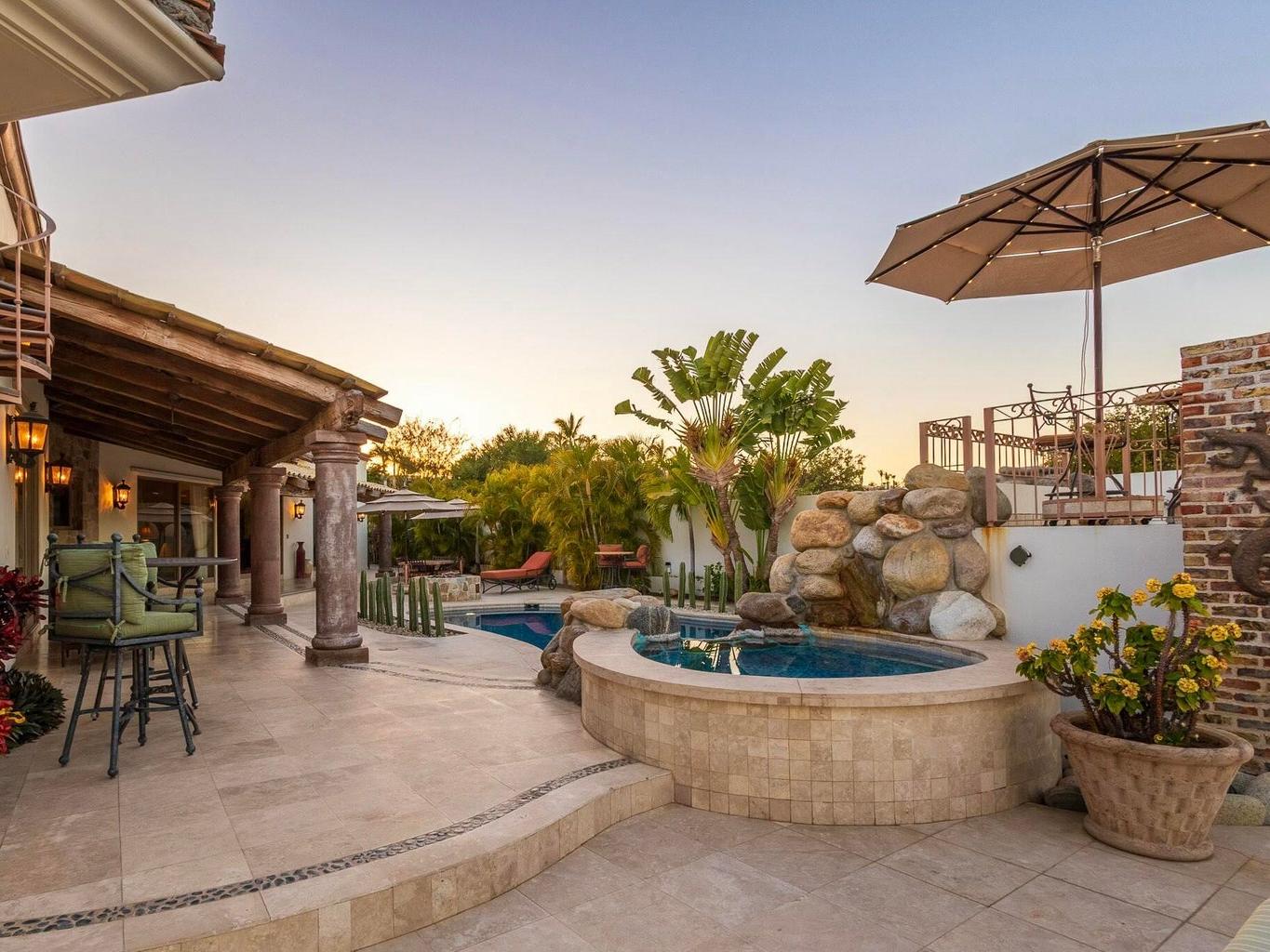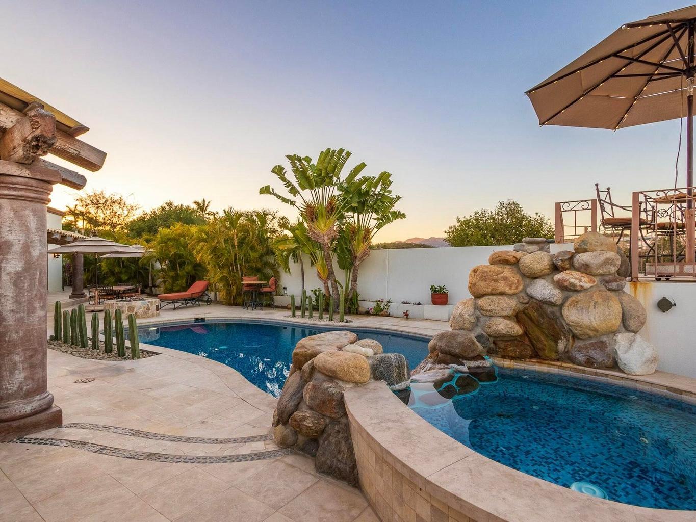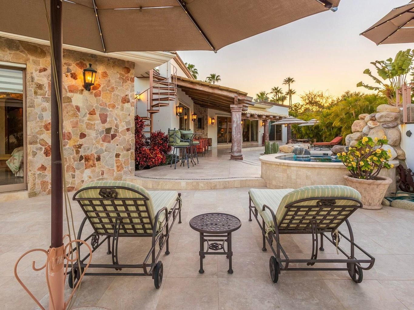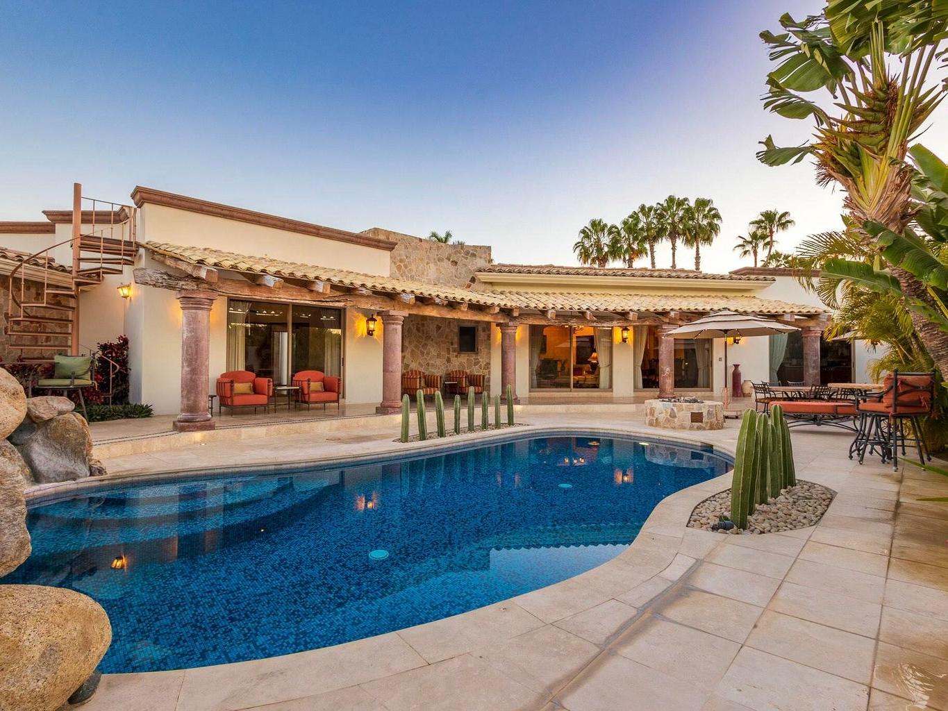 Fairway front home located on one of the most coveted streets in Palmilla Estates, this beautiful ranch-style, single-level home offers unparalleled privacy and breathtaking views. Perched above the canyon with direct sightlines down to the ocean, this property seamlessly blends luxury, comfort, and tranquility. Situated on a spacious and private lot, the home features a detached casita, a guest bedroom inside, and a primary suite with stunning ocean views. A fully equipped gym provides the flexibility to be converted into a fourth bedroom if desired. Outside, a large pool, fire pit and expansive patio are surrounded by a beautifully designed desert landscape, creating a serene and peaceful retreat.