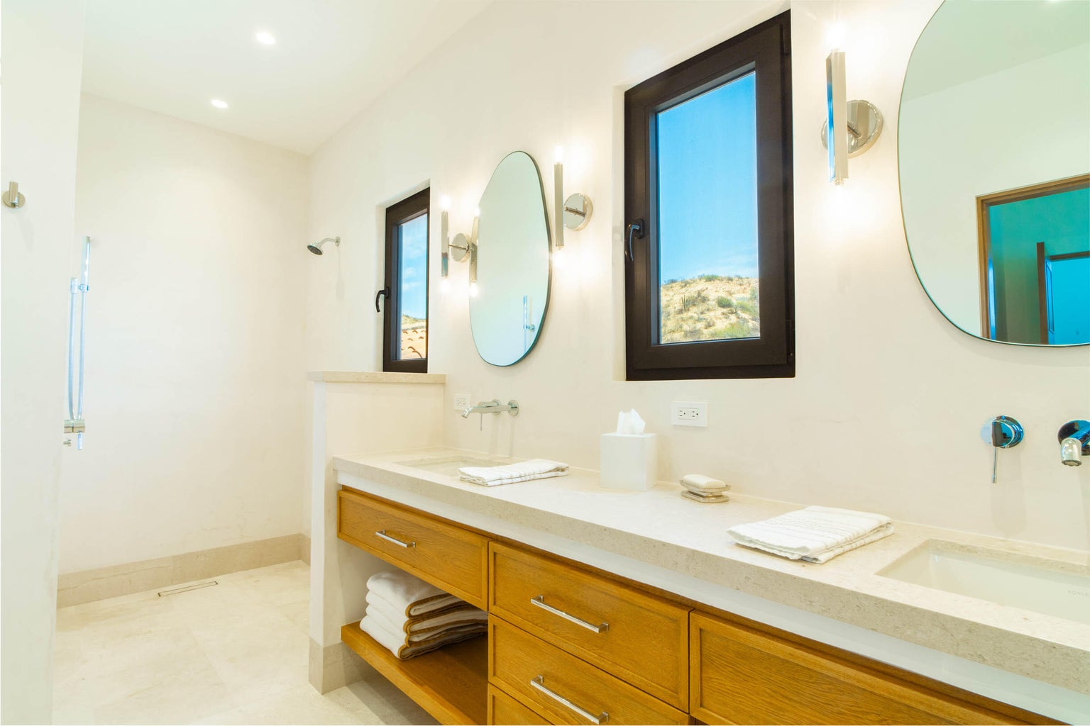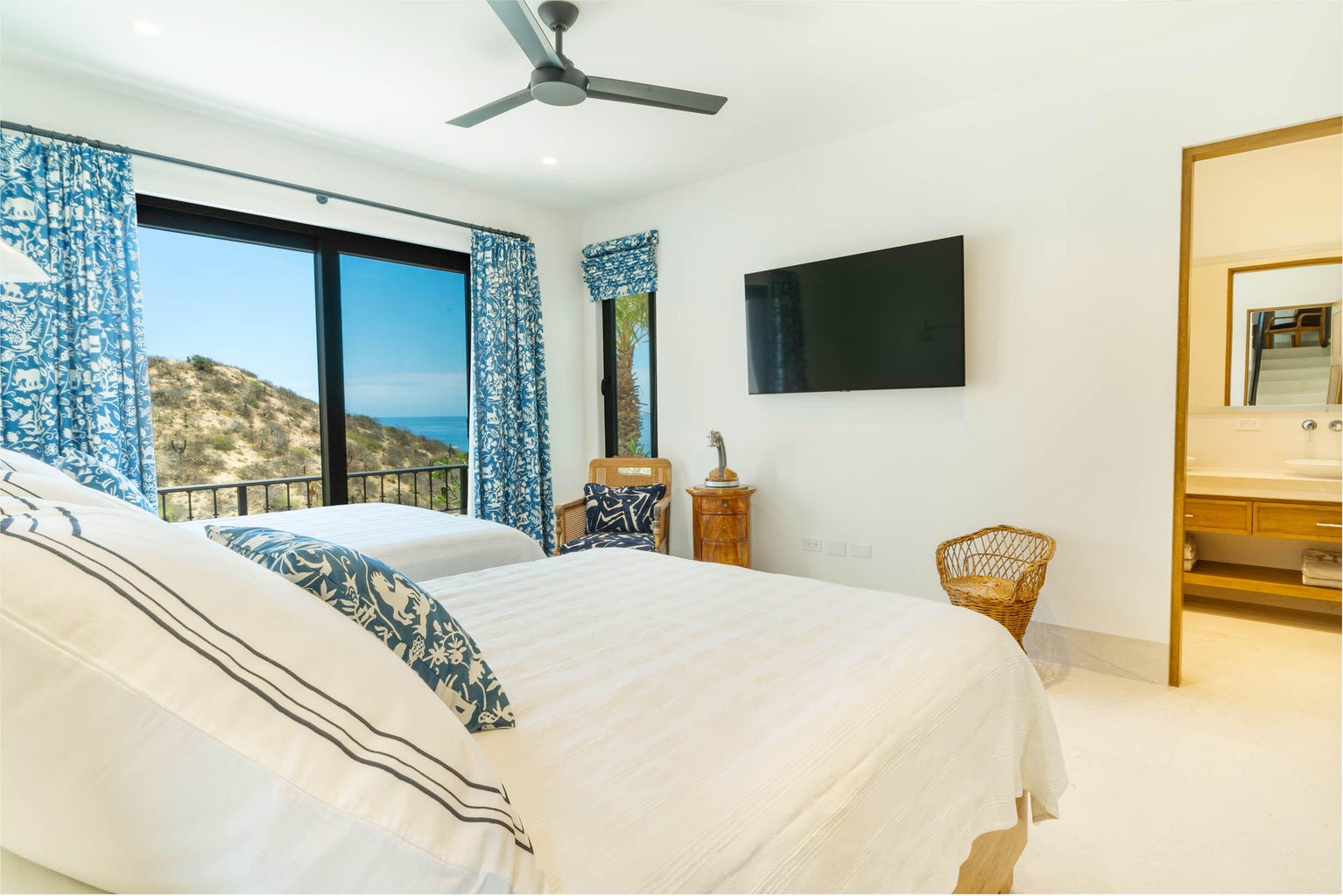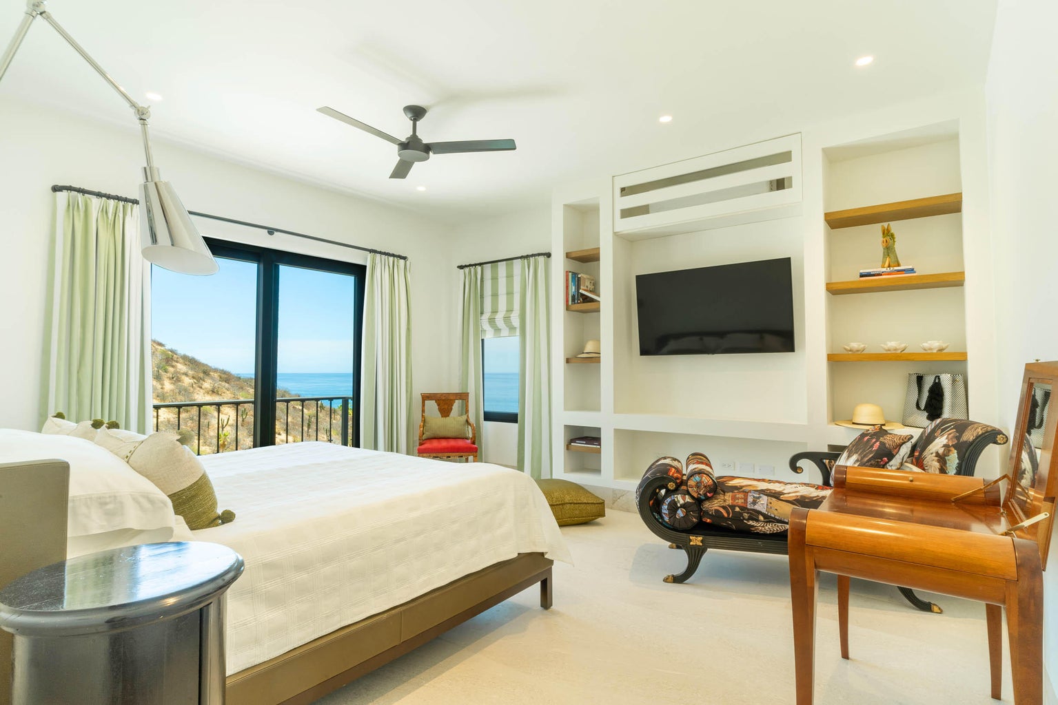Located in the exclusive gated community of Rancho Cerro Colorado, Casa Vista Azul captures the essence of Mexican charm while offering the comfort and luxury of modern living. This beautiful three-bedroom, four-and-a-half-bathroom villa is thoughtfully designed to create a warm and welcoming home where every detail is crafted with care. Stepping inside, the spacious living area immediately invites relaxation with its high ceilings, a handcrafted fireplace with rich concrete and tile accents, and large windows that fill the space with natural light. It's the kind of place where cozy evenings by the fire or mornings sipping coffee as the sun rises over the Sea of Cortez are day-to-day living experiences.