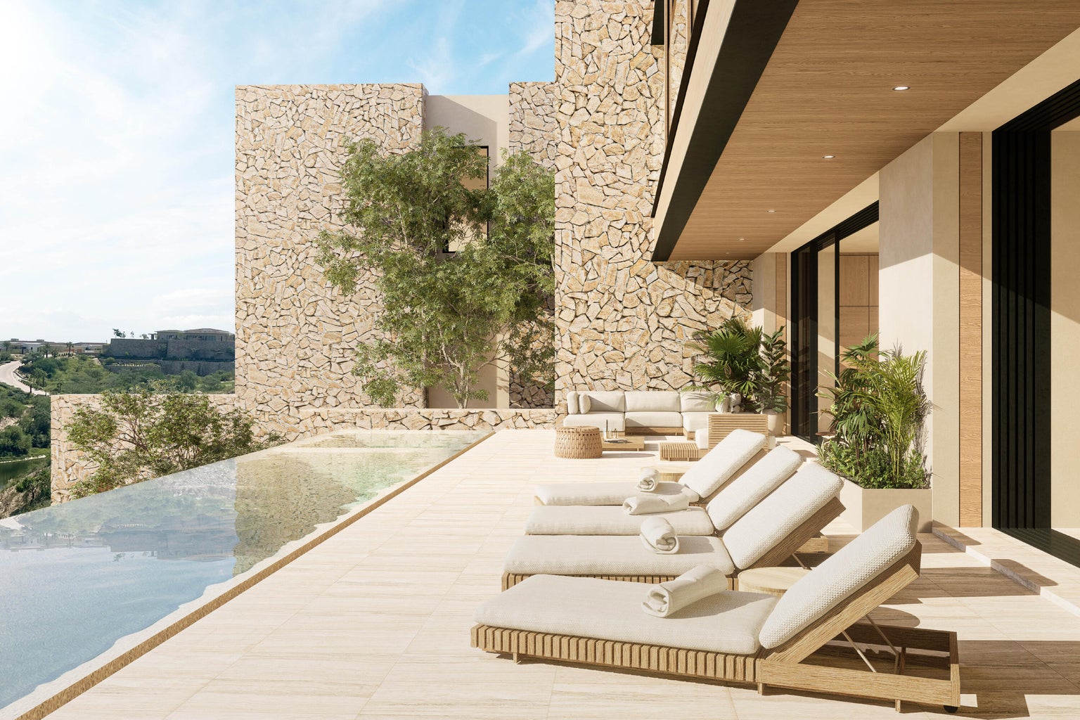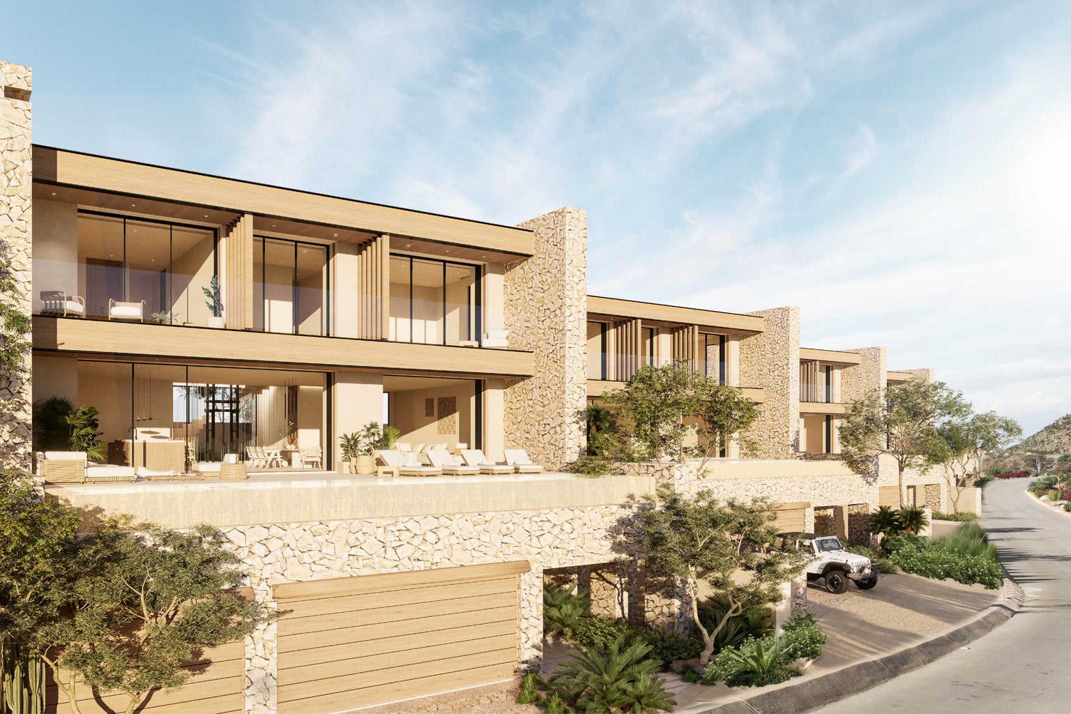El Lago features 16 single-family villas with vertical living layouts of two and three levels, maximizing views and social space for families and friends. Inspired by the Baja with welcoming and grounded earth tones, the residences offer modern living and timeless elegance within Los Cabos' most vibrant private community. The Ascendant villas feature living spaces - gourmet kitchen, dining, great room and family rooms on the main floor - seamlessly flowing to the outdoor terrace and pool. Upstairs are 3 bedrooms* complete with ensuite baths and terraces overlooking the Querencia lake, Sea of Cortez, mountains and arroyo. Two-car garage and double golf cart parking, storage and flex space on the ground level with the main entrance. *3 bedroom options are available.