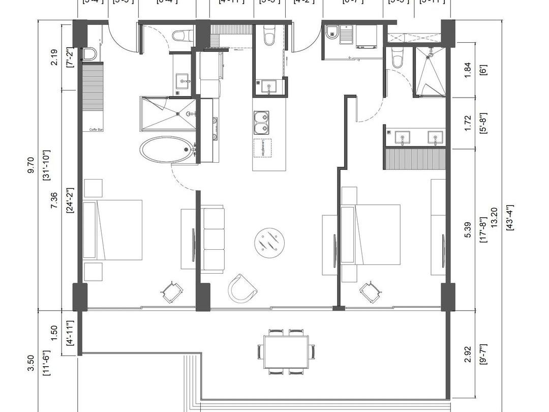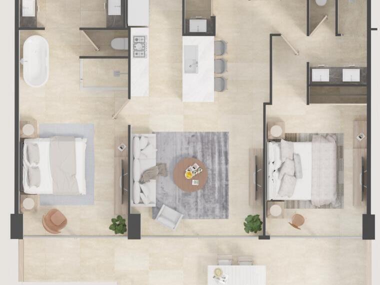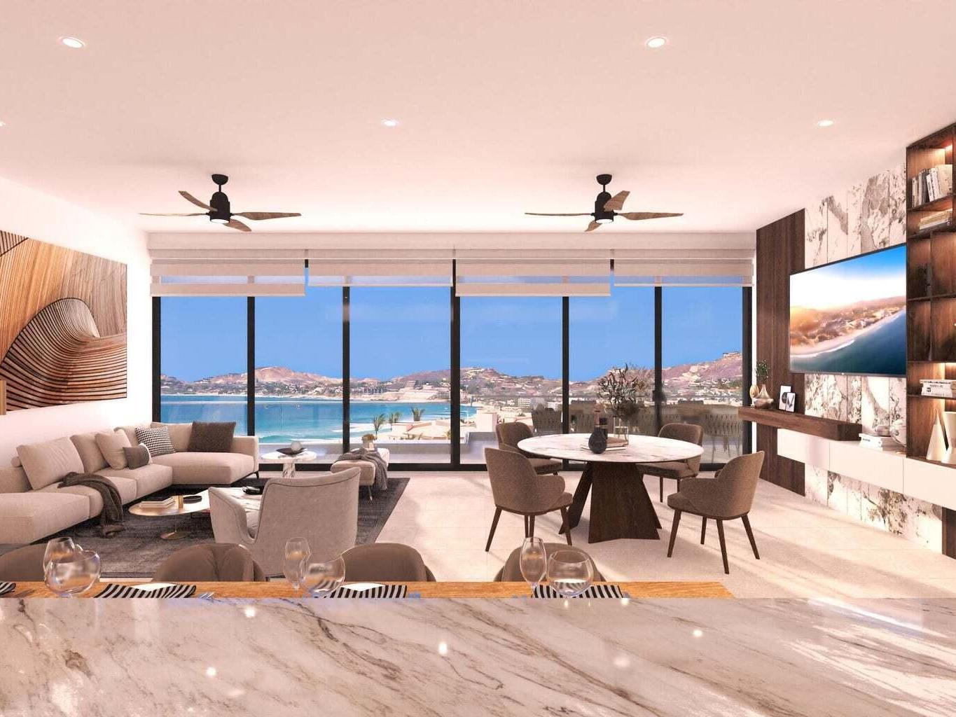 This ALBALUZ residence two-bedroom residence boasts amazing Ocean and Beachfront views of the San José Bay area. This two-bedroom residence, both with ensuite baths, and a soaking tub in the Master. The bedrooms are separated by a fully equipped eat-in kitchen, half bath, laundry room, living room with a pull out to enjoy guests or create a third bedroom, as needed and covered terrace with plunge pool on ground floor units only. All living spaces are designed with the most luxurious finishes throughout for ultimate comfort. The rainfall shower, and private WC give the spa-like bathroom a resort-feel within the comfort of home. The eat in kitchen is fully equipped with top-of- the line appliances. The hurricane rated custom glass doors allow natural light.