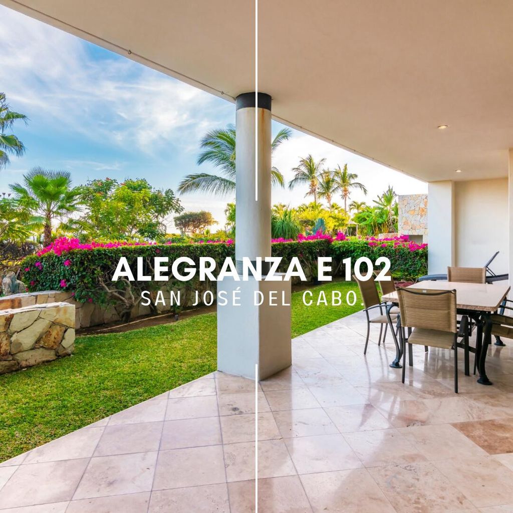 Discover this fabulous ground floor condo with 1600 finished SF, 2 bedrooms and 2 bathrooms, located in the award-winning Alegranza complex and offering stunning views of the Sea of Cortez. The unit features floor to ceiling sliding glass doors in both bedrooms and the living area along with a 470 SF private garden area with stairs going down to the pool/hot tub in front and a 420 SF private terrace accessible from the main living room, along with 10-foot ceilings plus a spacious open kitchen. Offering owner finance with 50% down at 7% interest and other price/terms negotiable. On-site amenities include a restaurant under renovation, a fitness center, tennis courts, 3 pools, and much more. The complex also provides 24-hour controlled access security and concierge service.