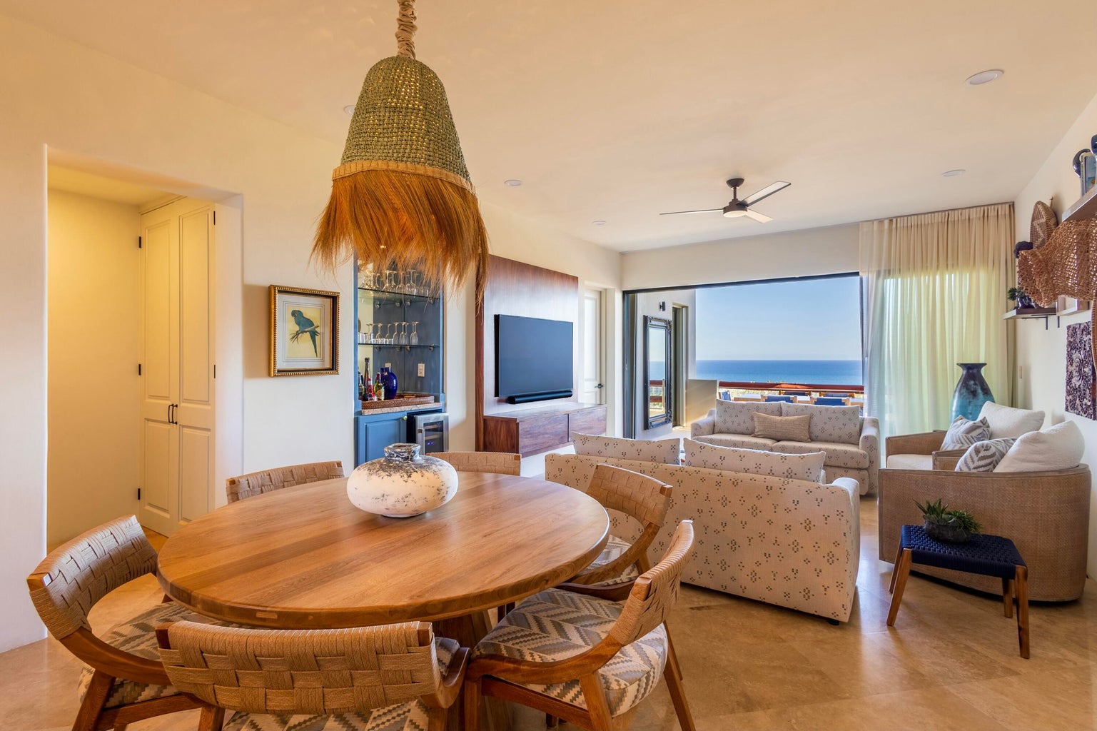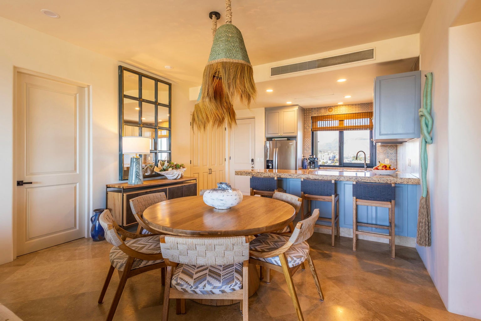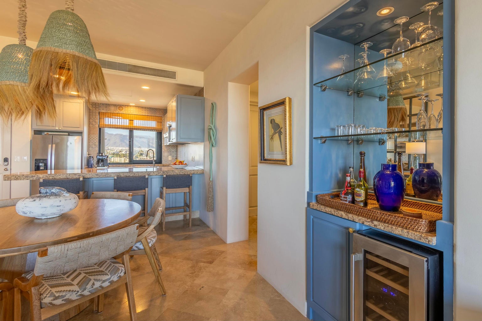 Feel like you're living at the top of the world in this newly remodeled three-bedroom, three-bathroom penthouse. Revel in breathtaking views of the Sea of Cortez, Punta Gorda, and the estuary from almost every room. Floor-to-ceiling sliding doors seamlessly connect the bright and airy interior to a spacious terrace, perfect for soaking in the natural beauty. Ascend to the rooftop terrace, your private retreat complete with lounge seating, outdoor kitchen complete with built-in grill and rotisserie, fridge, ice maker and sink, fire pit, and Jacuzzi--ideal for entertaining, sun bathing, whale watching, or stargazing under the clear Baja skies.