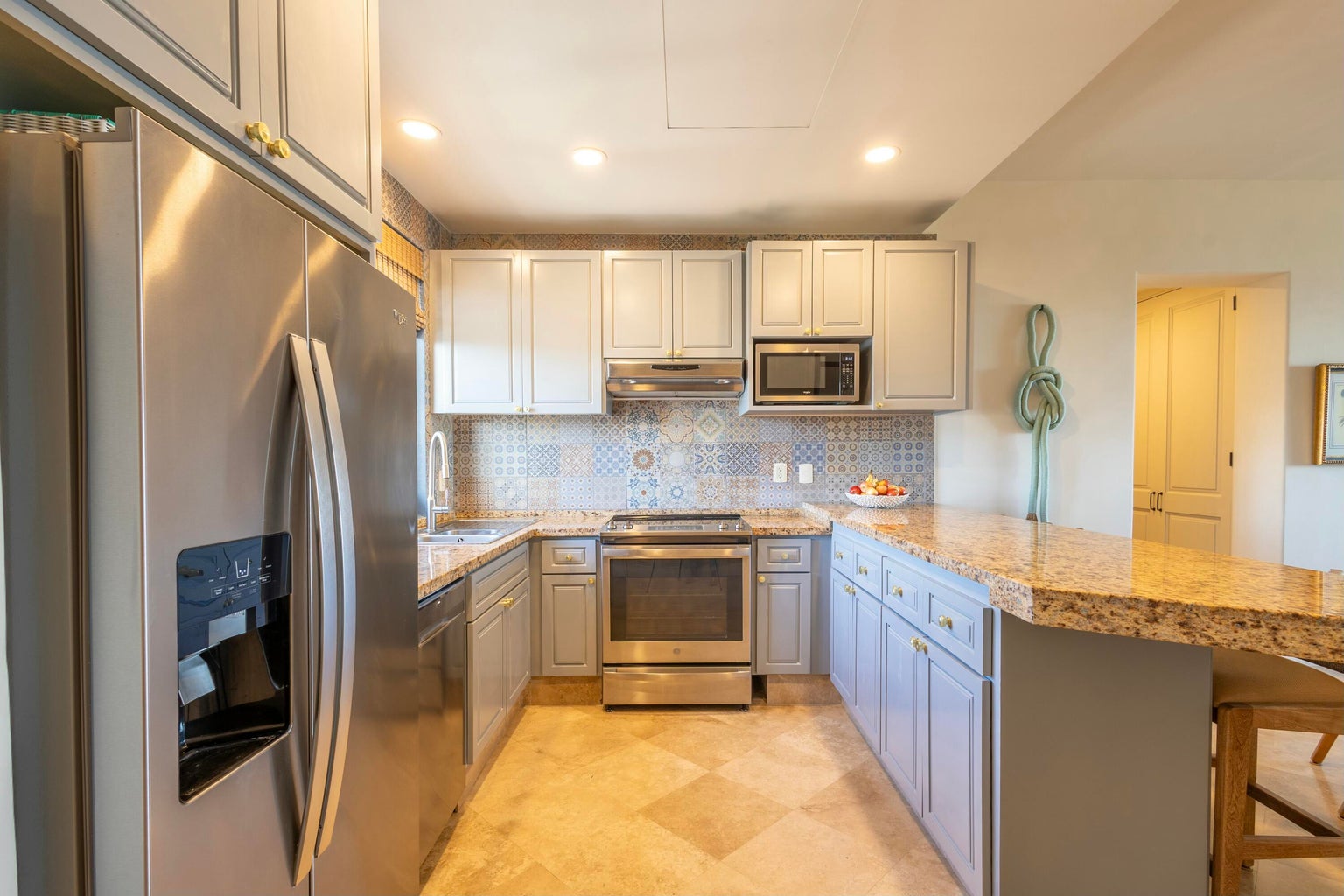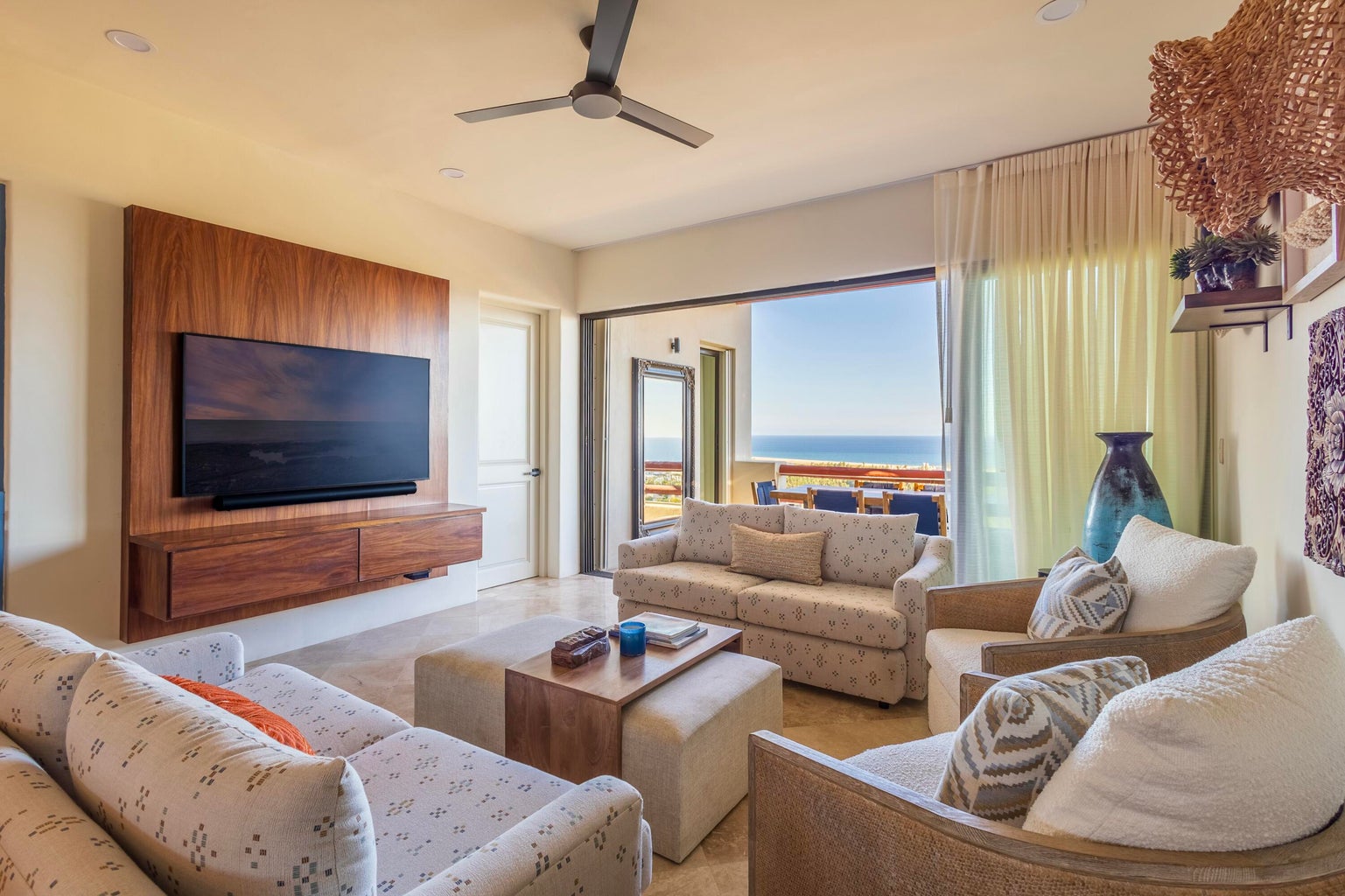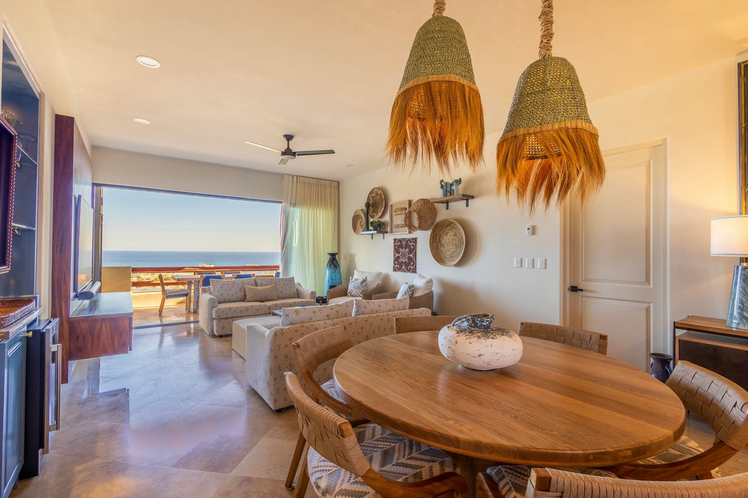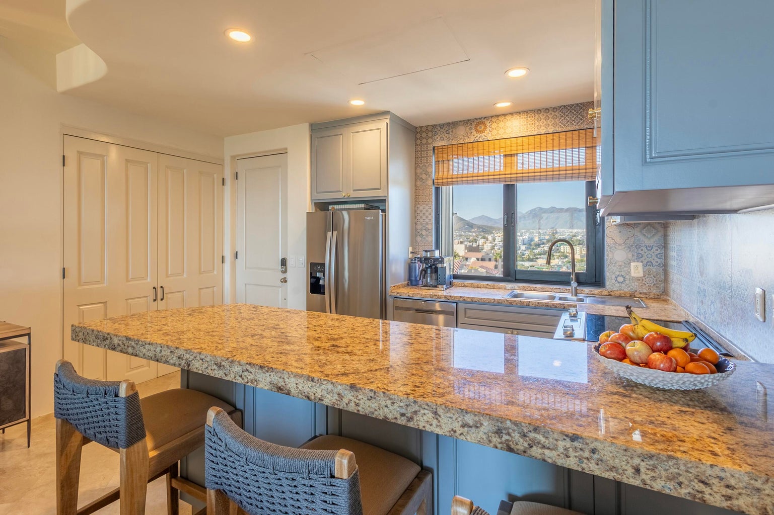 Feel like you're living at the top of the world in this newly remodeled three-bedroom, three-bathroom penthouse. Revel in breathtaking views of the Sea of Cortez, Punta Gorda, and the estuary from almost every room. Floor-to-ceiling sliding doors seamlessly connect the bright and airy interior to a spacious terrace, perfect for soaking in the natural beauty. Ascend to the rooftop terrace, your private retreat complete with lounge seating, outdoor kitchen complete with built-in grill and rotisserie, fridge, ice maker and sink, fire pit, and Jacuzzi--ideal for entertaining, sun bathing, whale watching, or stargazing under the clear Baja skies.
