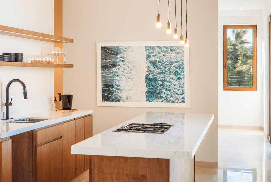 BLANC de Mar presents a collection of four brand-new marina-front residences at Puerto Los Cabos. Each residence offers discerning buyers a range of client-tailored custom options. Enter this inviting 2-bedroom condo and discover a welcoming terrace and patio featuring a designated BBQ area and outdoor shower - perfect for creating a relaxing lounge area. The spacious principal bedroom offers a serene retreat. Adding a touch of warmth, the cabinets feature unique fabric accents, showcasing the attention to detail found throughout this residence. The kitchen is equipped with top-of-the-line Smeg appliances. The generously sized guest bedroom offers the flexibility to incorporate a dedicated office or study area perfect for those who work remotely or desire a quiet space for hobbies
