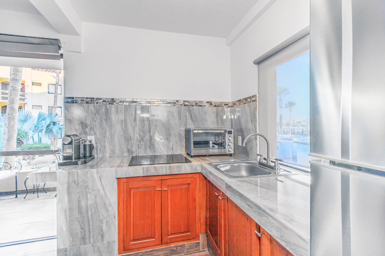 Nicely remodeled one bedroom one bathroom condo on the second floor overlooking the swimming pool. The complex has 3 heated pools and 3 jacuzzies with 24-hour security will give you peace of mind. The condo is in the Highly Desirable Club La Costa Development, with a PRIME location in the Hotel Zone of San José del Cabo. Just a few steps from the beach, shops, restaurants, and grocery stores. This place comes furnished,
