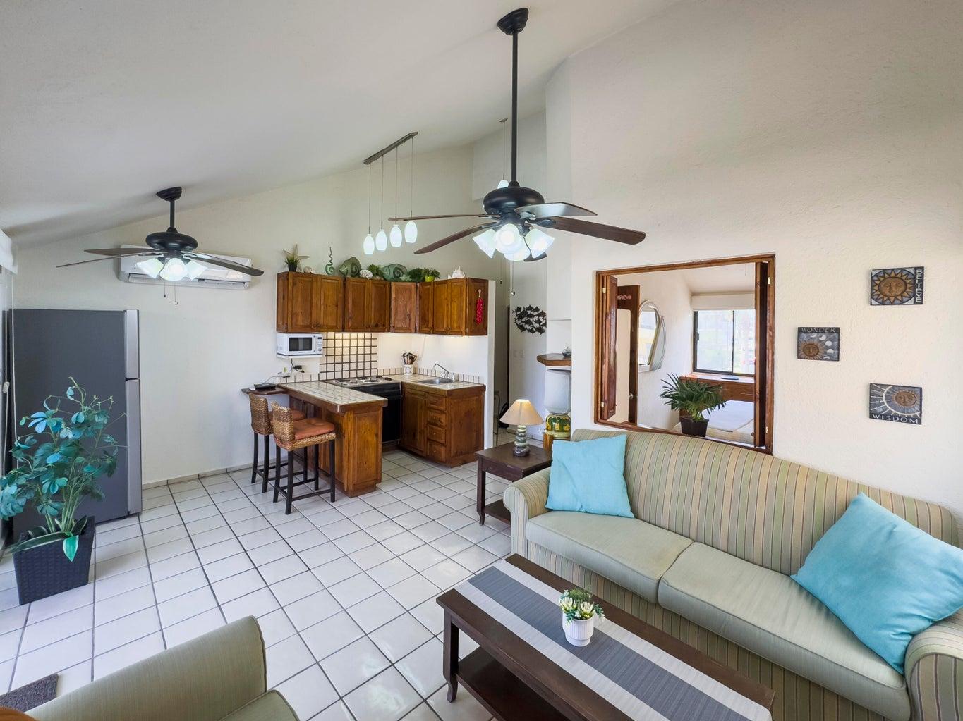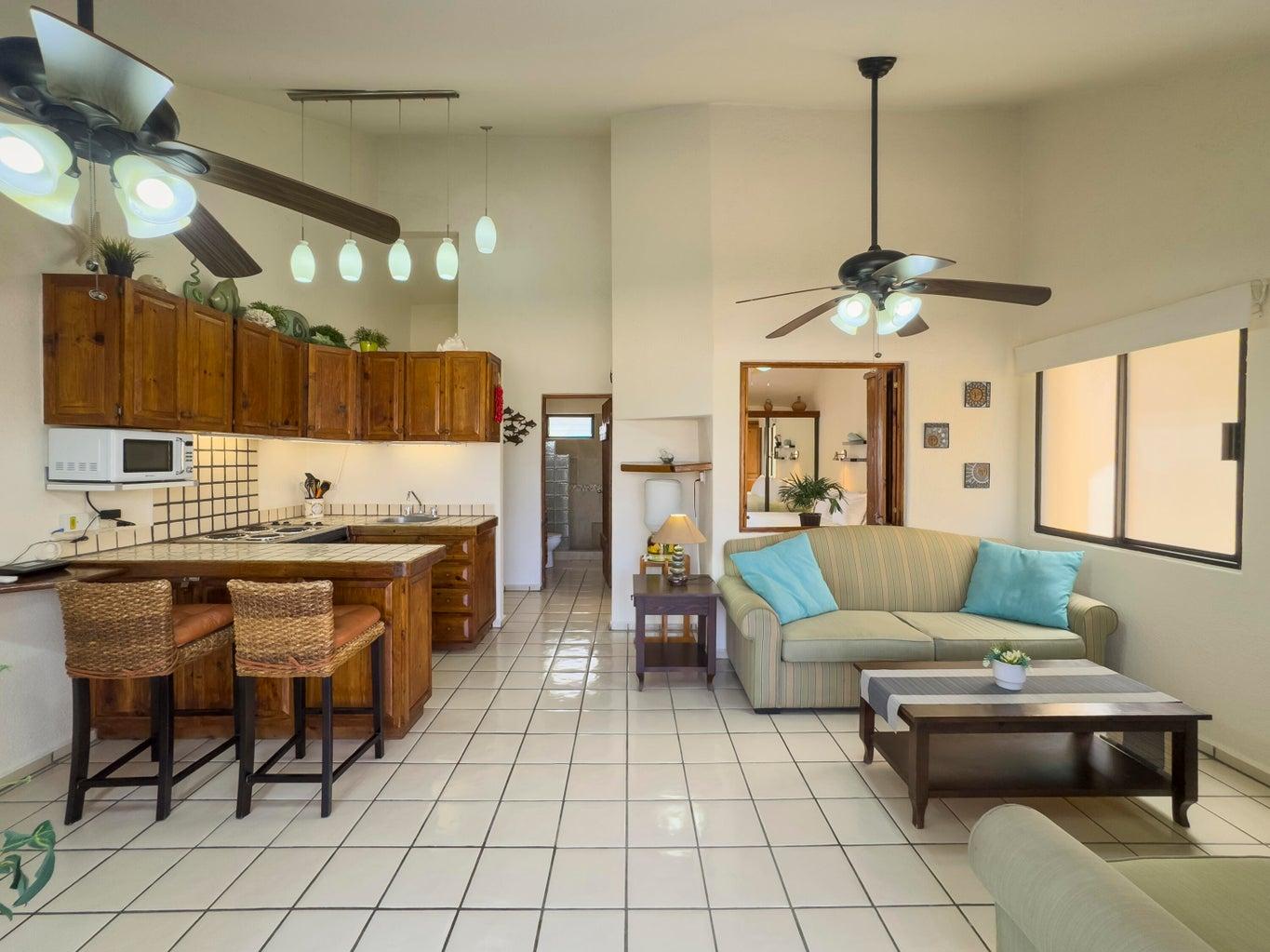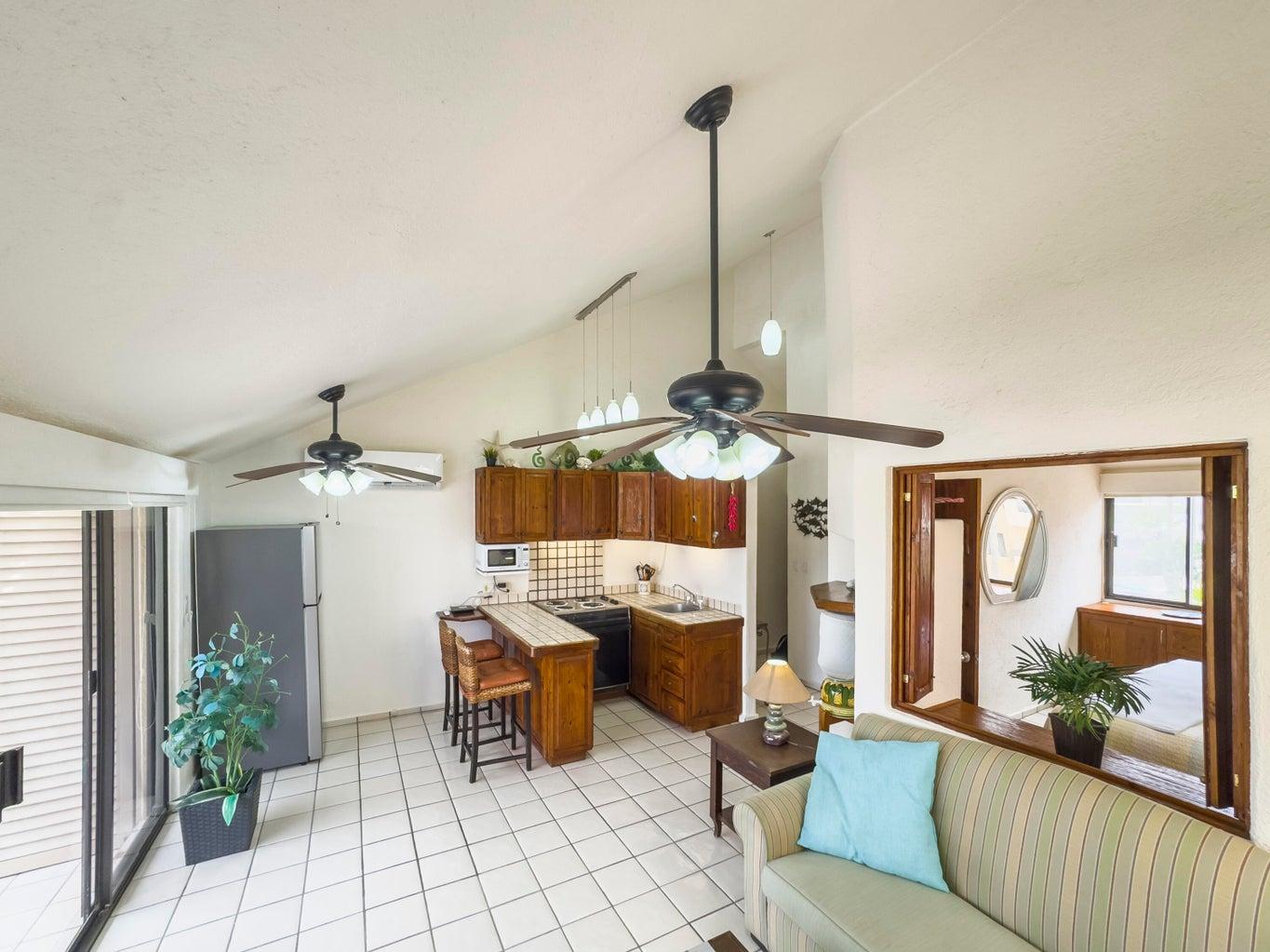 A Rare Penthouse Sanctuary in the Heart of San José del Cabo. Step inside this unique and peaceful retreat in the sought-after community of Club La Costa phase one. A charming one-bedroom penthouse, one of only four of its kind, offering a generous, covered, east-facing balcony to welcome each sunrise. Perched just above a crystalline pool and spa, and surrounded by lush, mature gardens, this residence is a sanctuary of natural beauty and quiet luxury. Vaulted ceilings create an airy sense of openness, elevating the interior far beyond its square footage. With no one above you and only one easy staircase to climb, this top-floor residence offers a unique blend of privacy and ease. The home is ideally positioned on the tranquil eastern edge of the community, overlooking a serene