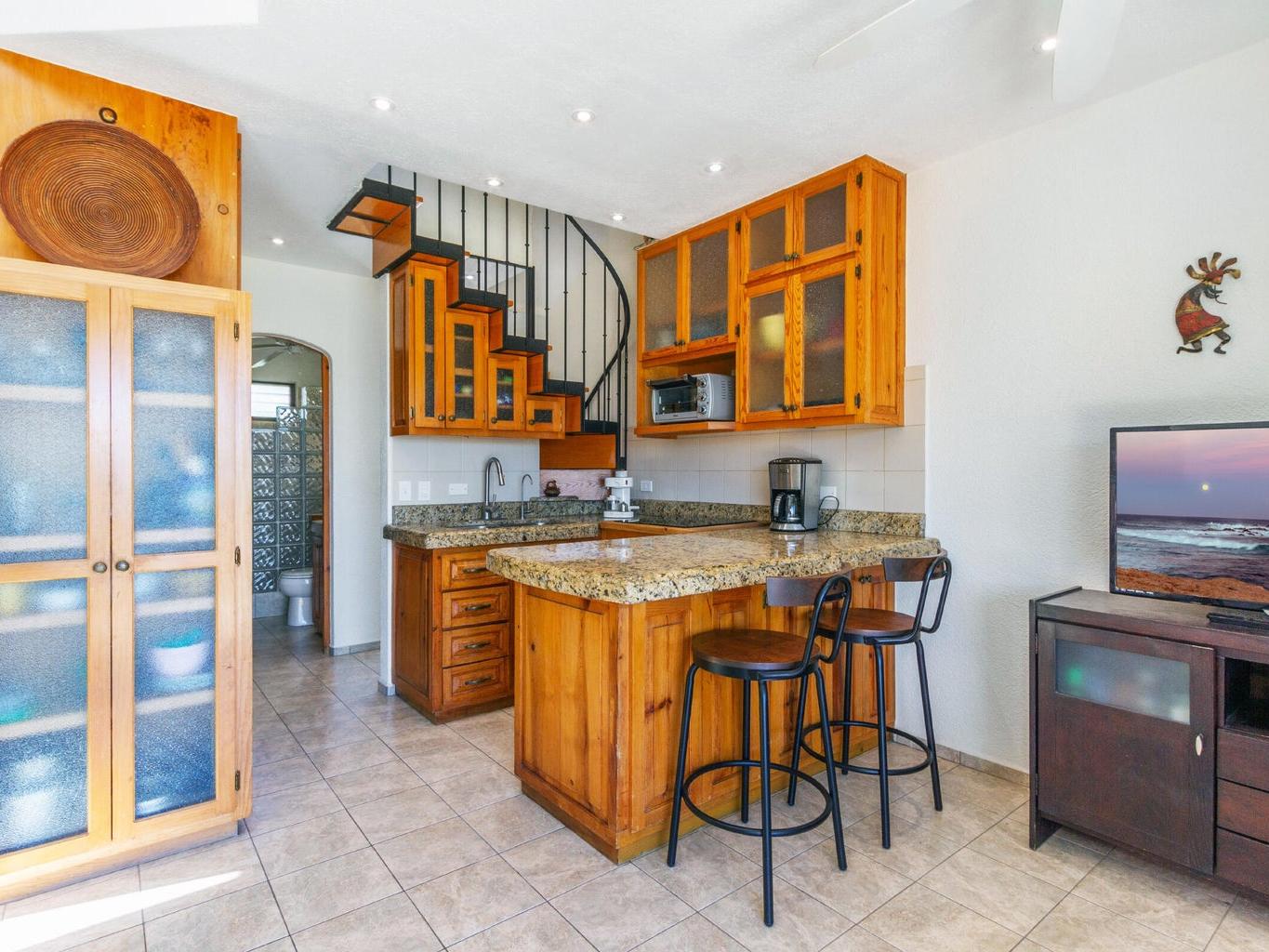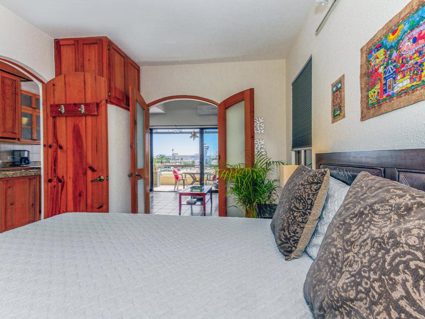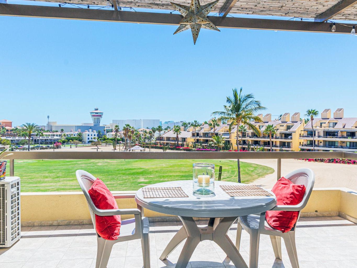 Great opportunity for this 2 bed 2 full bath unit in one of the best gated communities in all of Baja! South terrace with golf course and a bit of ocean view, vaulted ceilings throughout plus granite counter tops in kitchen. Upgraded electric, wiring, LED lighting, hot water on demand, hurricane shutters, new A/C units and new toilets are just a few of the upgrades this owner has done. Walk to the beach and all restaurants and art galleries! 3 swimming pools in the complex, beautiful gardens and one parking stall right outside the unit. Great opportunity for rental income and quick possession possible. Do not miss this one!