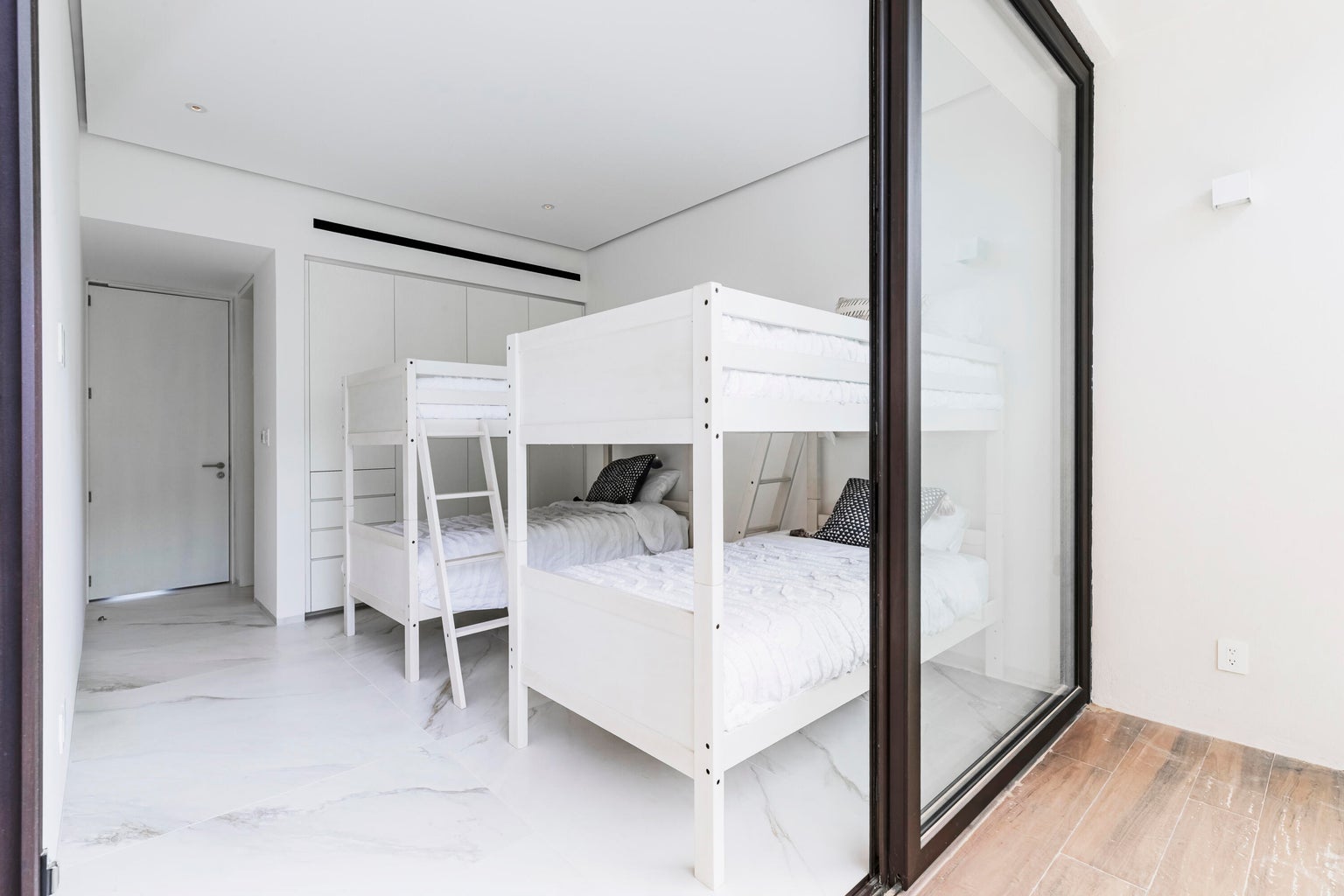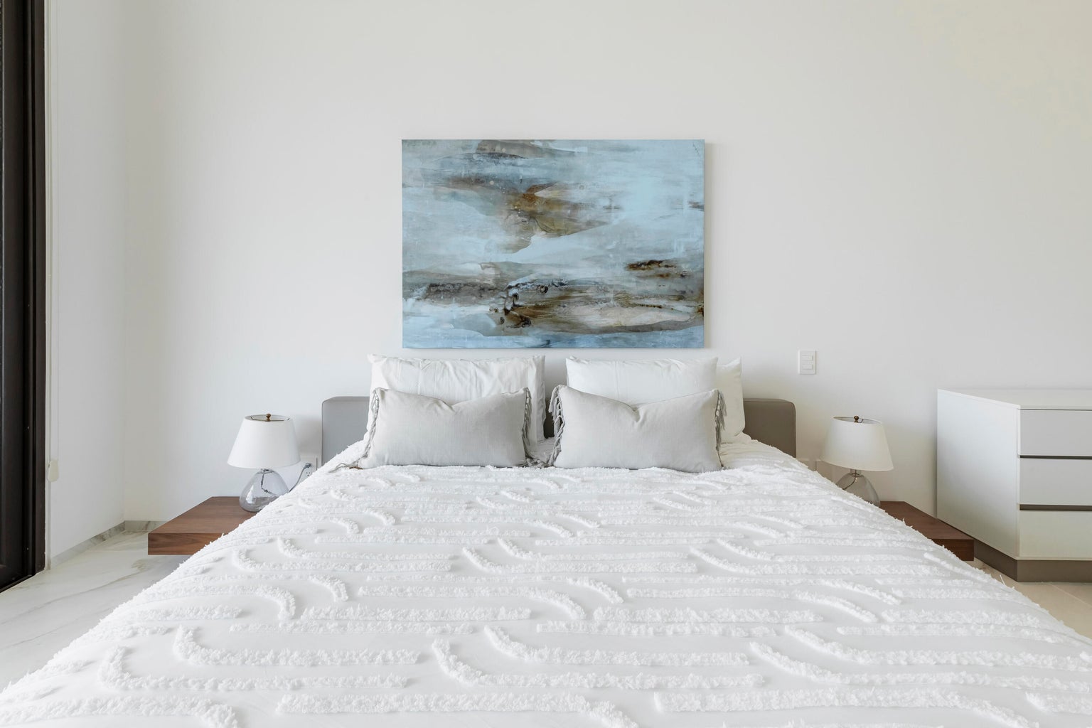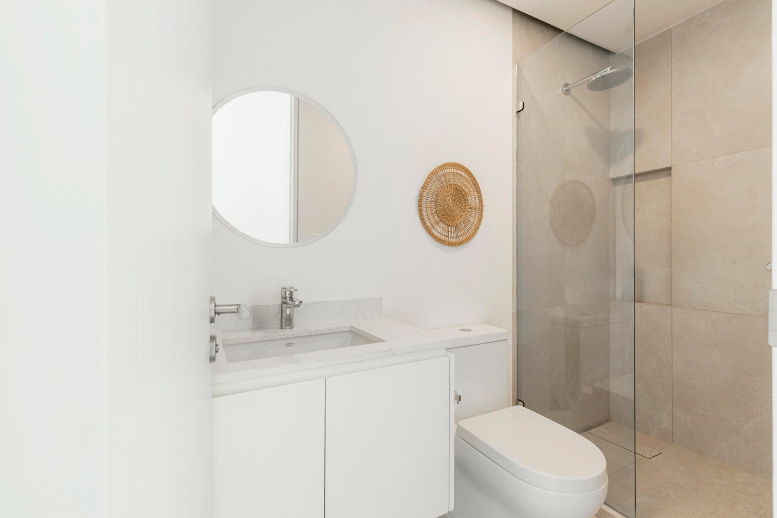 This sophisticated retreat boasts three spacious bedrooms, including a lavish master suite with a walk-in closet and a spa-inspired en-suite bathroom. A convenient half-bathroom enhances guest comfort. Outside, a private terrace provides the perfect space to relax or entertain in serenity.