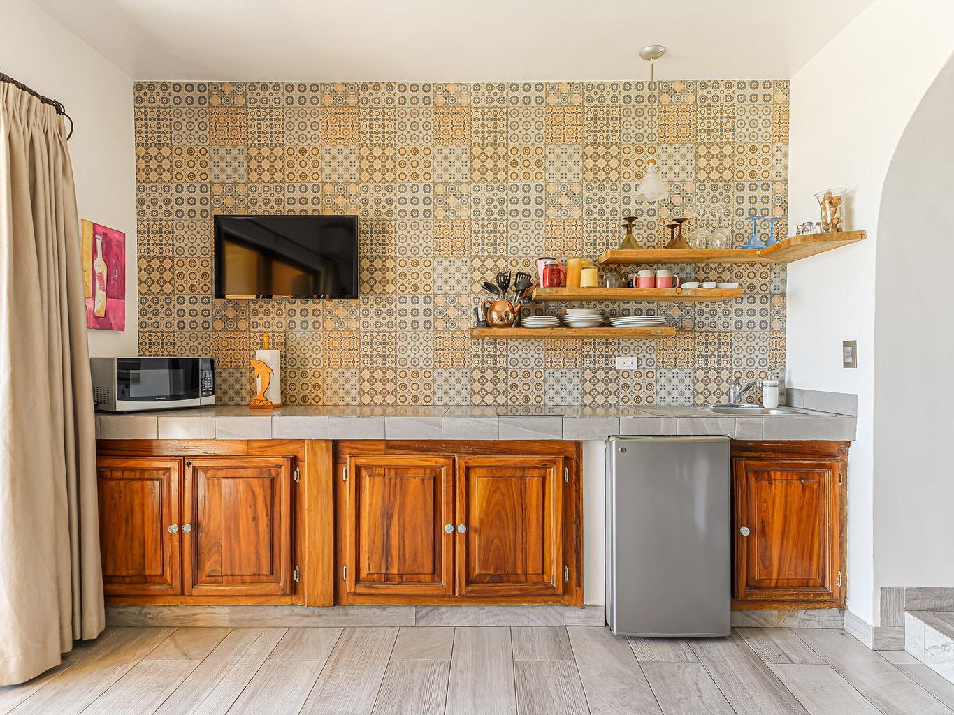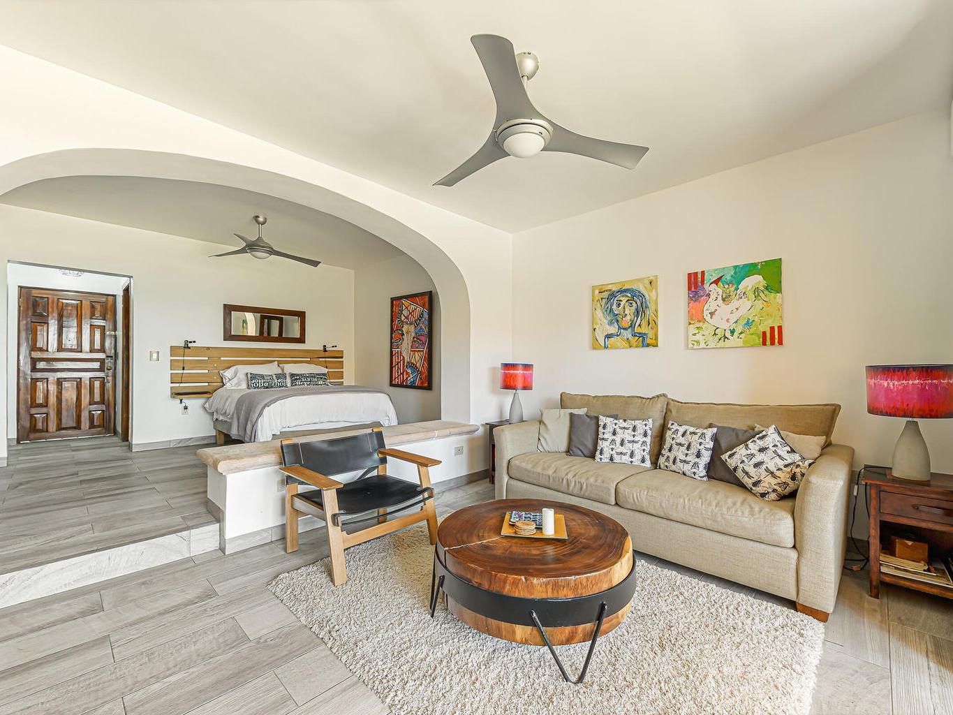 This studio residence boasts a bright, open layout with a queen bed, a cozy sofa, and an inviting patio, a perfect spot to unwind with ocean breezes and Sea of Cortez views. The kitchenette is complete with a two-burner cooktop, fridge and appliances, outdoor gas grill and housewares. The three-piece bathroom is well lit and there is plenty of storage. Updated in 2016, the remodel work included complete electrical re-wiring, new ceramic tile flooring, bathroom plumbing and fixtures, and the walls smoothed and painted.