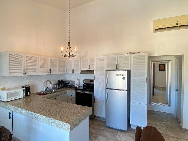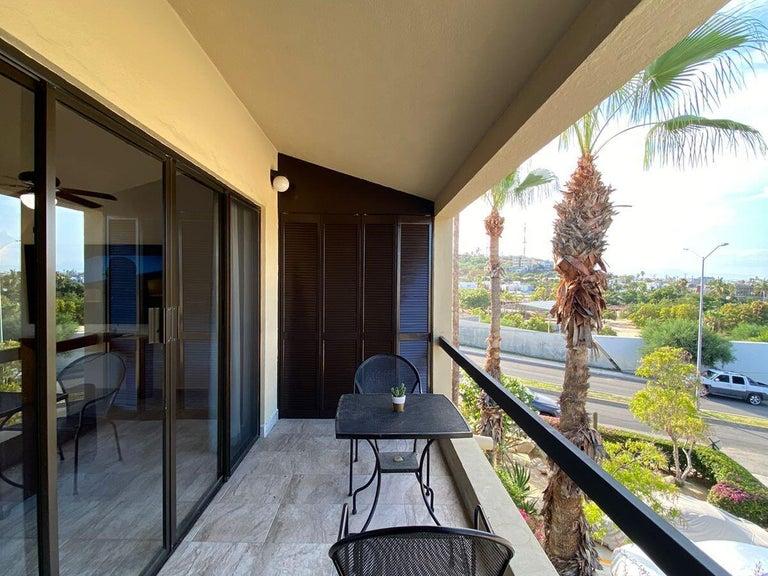 Experience the ultimate in convenience and luxury living in this stunning 1-bedroom, 1-bathroom condo located in the Hotel Zone of San Jose del Cabo. With 800 square feet of living space, this upper-level unit offers breathtaking views of the estuary and historic downtown. The condo has been recently upgraded with: new tile flooring throughout,marble shower, adding a touch of luxury to the bathroom,granite countertops, perfect for cooking and entertaining, and