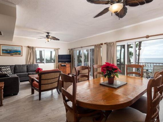 LOCATION, LOCATION, LOCATION! WELCOME TO LAS OLAS BEACHFRONT PROPERTY! Just steps to the sand on the 3 most popular surf breaks in Los Cabos. This 3 bedroom quiet 2nd floor end unit is fully furnished and turn-key! Perfect for surfers or beachfront loungers. Las Olas is a gated and guarded community with lush surroundings and on-site amenities including pool, 3 Jacuzzis, gym, tennis/pickleball court, beach lounge area and private beach access. This condo includes 1 surfboard locker and a designated covered parking space . Great rental income producer!