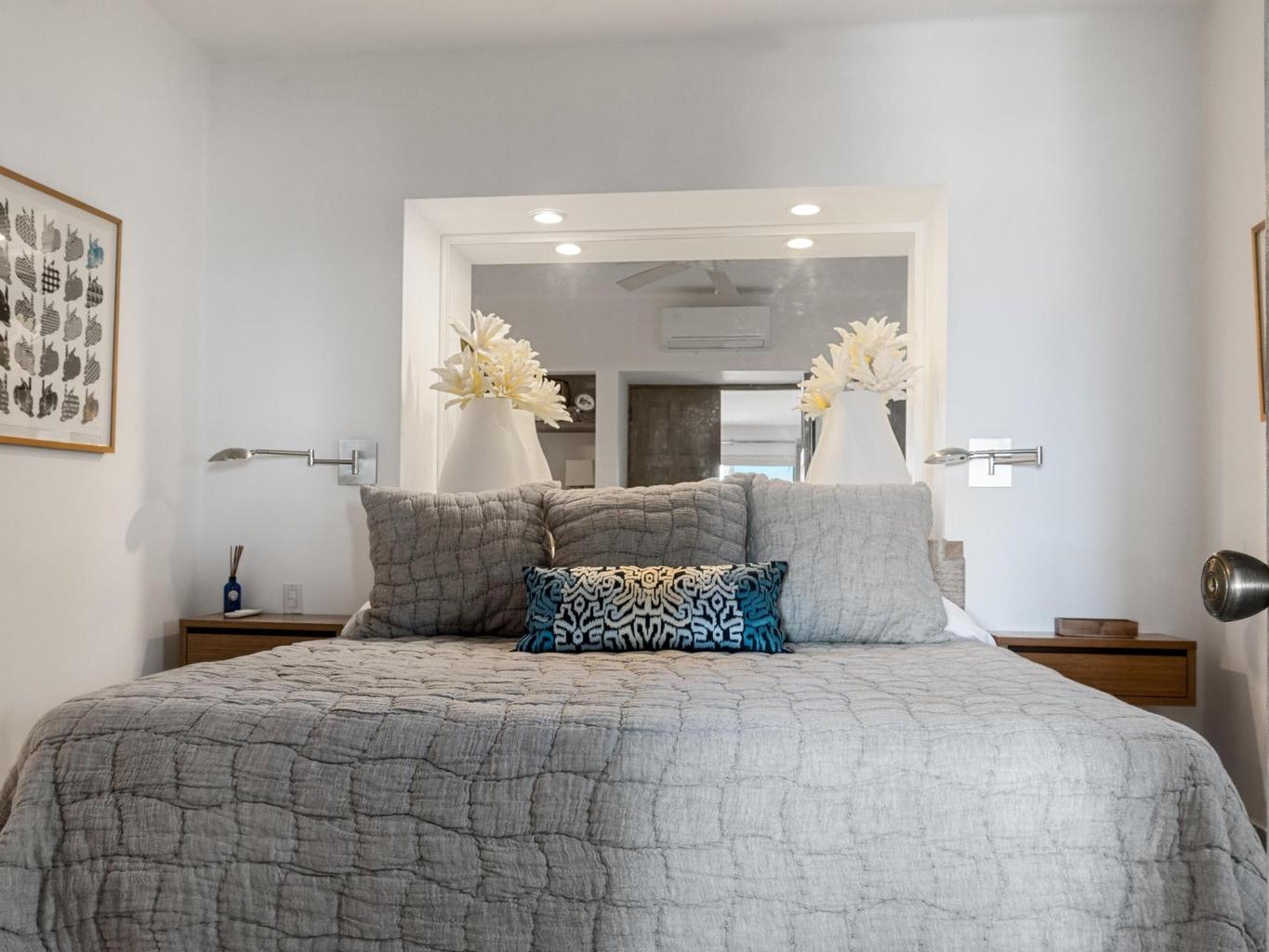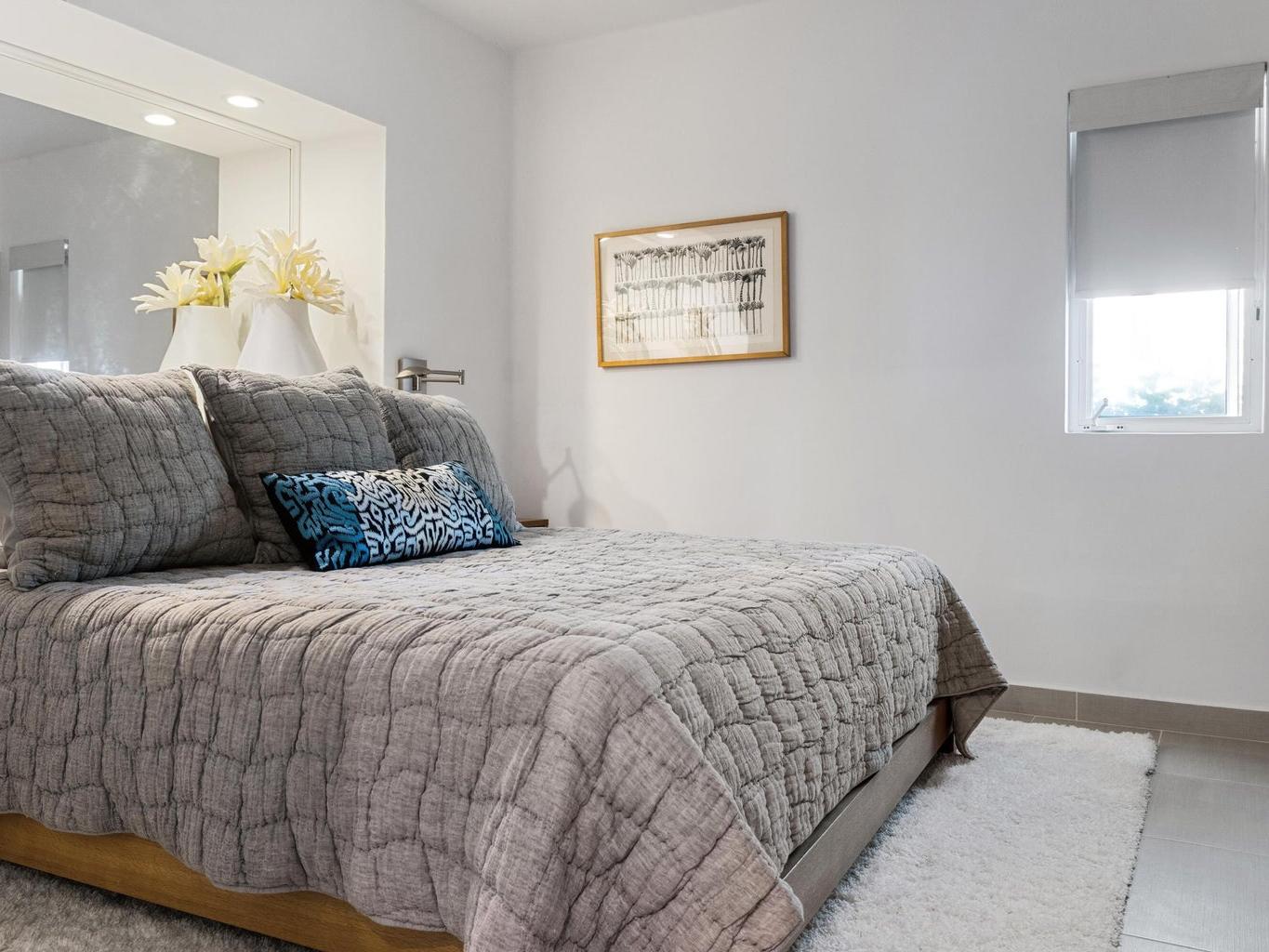 This gorgeous, beach-style condo has been completely updated and offers an elegant, open living space with wonderful upgrades throughout, creating a bright and welcoming atmosphere. The living room perfectly blends modern style and cozy charm, and the lovely kitchen features quartz countertops and stainless steel appliances. The master bedroom has a window overlooking the pool and tropical landscaping.