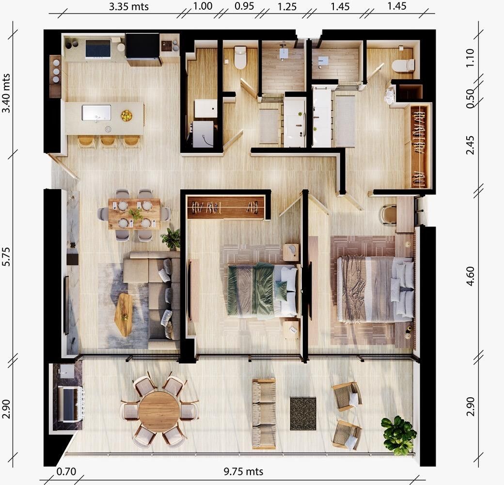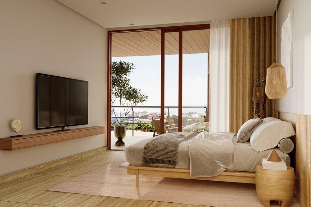 MARE combines contemporary architecture with high-quality finishes in the heart of San José del Cabo's hotel zone. This stunning 2-bedroom, 2-bathroom condo offers panoramic ocean views and views of the Vidanta Golf Course, blending luxury and convenience in an unbeatable location. The spacious front terrace is perfect for entertaining or relaxing. Amenities include: swimming pool (with splash area), fire pit, hammocks, pickleball court, gym, event room, business center, and 24/7 security. The building features five elevators, and storage units are available (ask about availability). The interior includes porcelain tile flooring and quartz countertops. A unique investment opportunity! Contact us to schedule a visit and make MARE your private sanctuary.