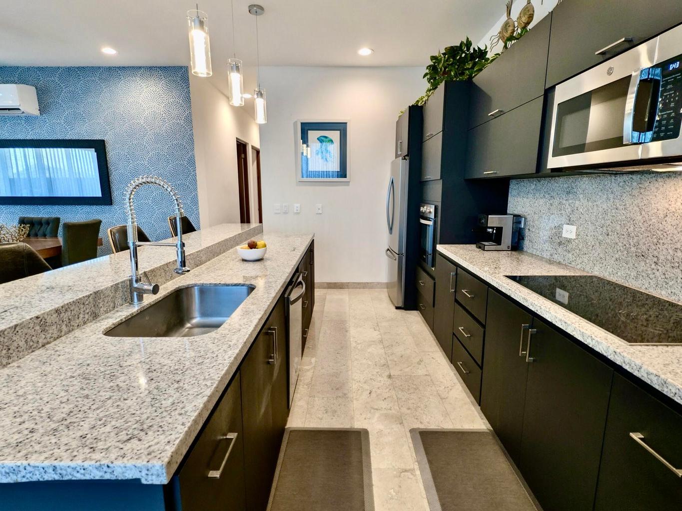 Enjoy the privacy, space, and panoramic views typical of a penthouse—this luxury residence is located just two floors from the top, offering breathtaking sunsets and sweeping views of the ocean, city, and mountains.