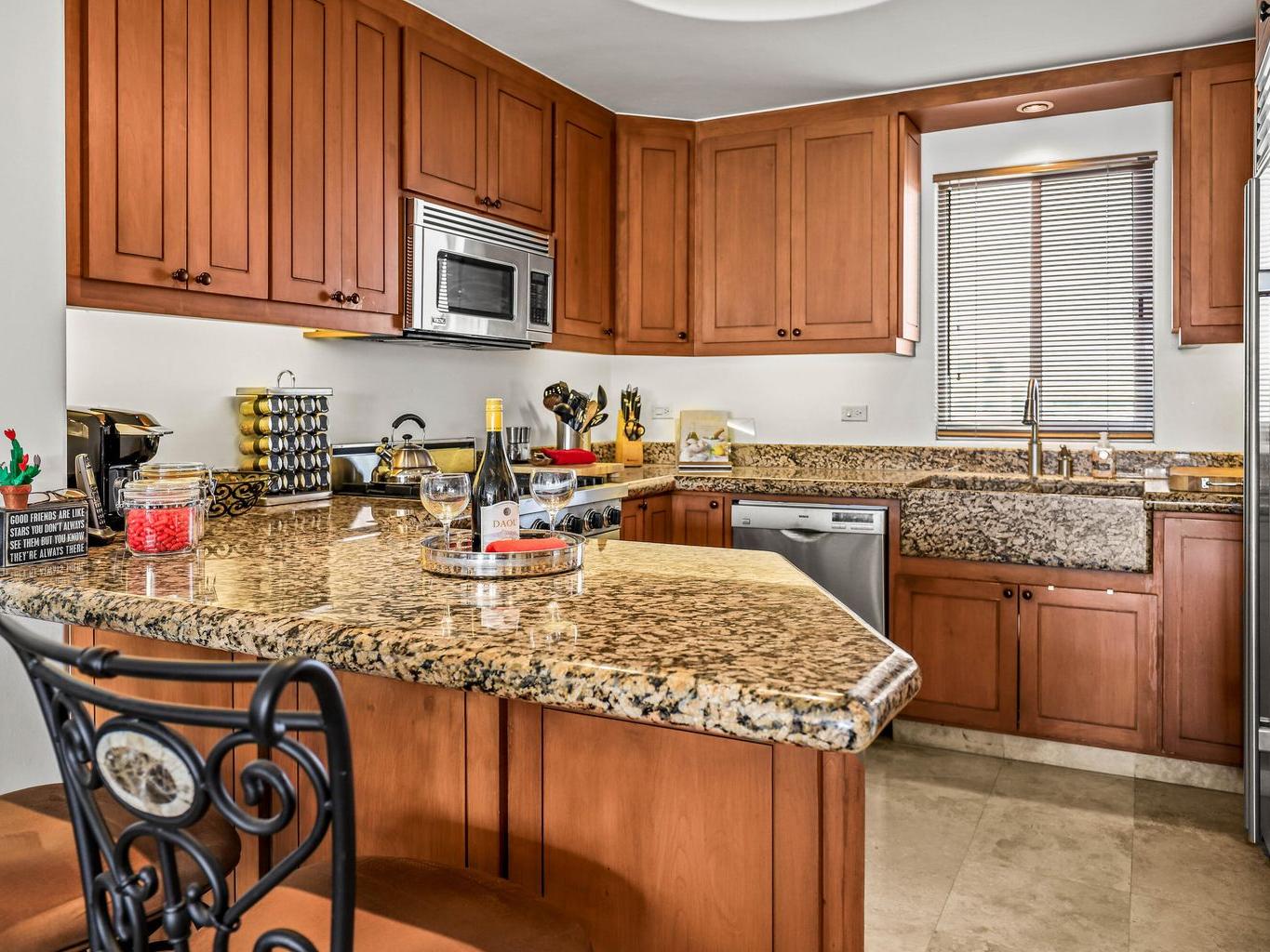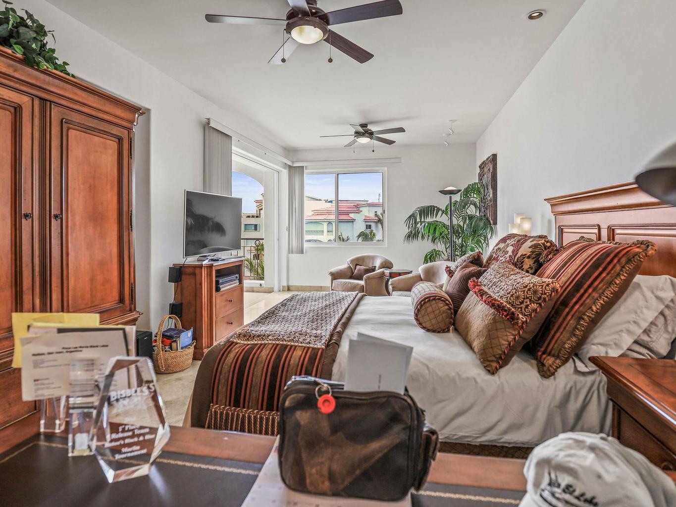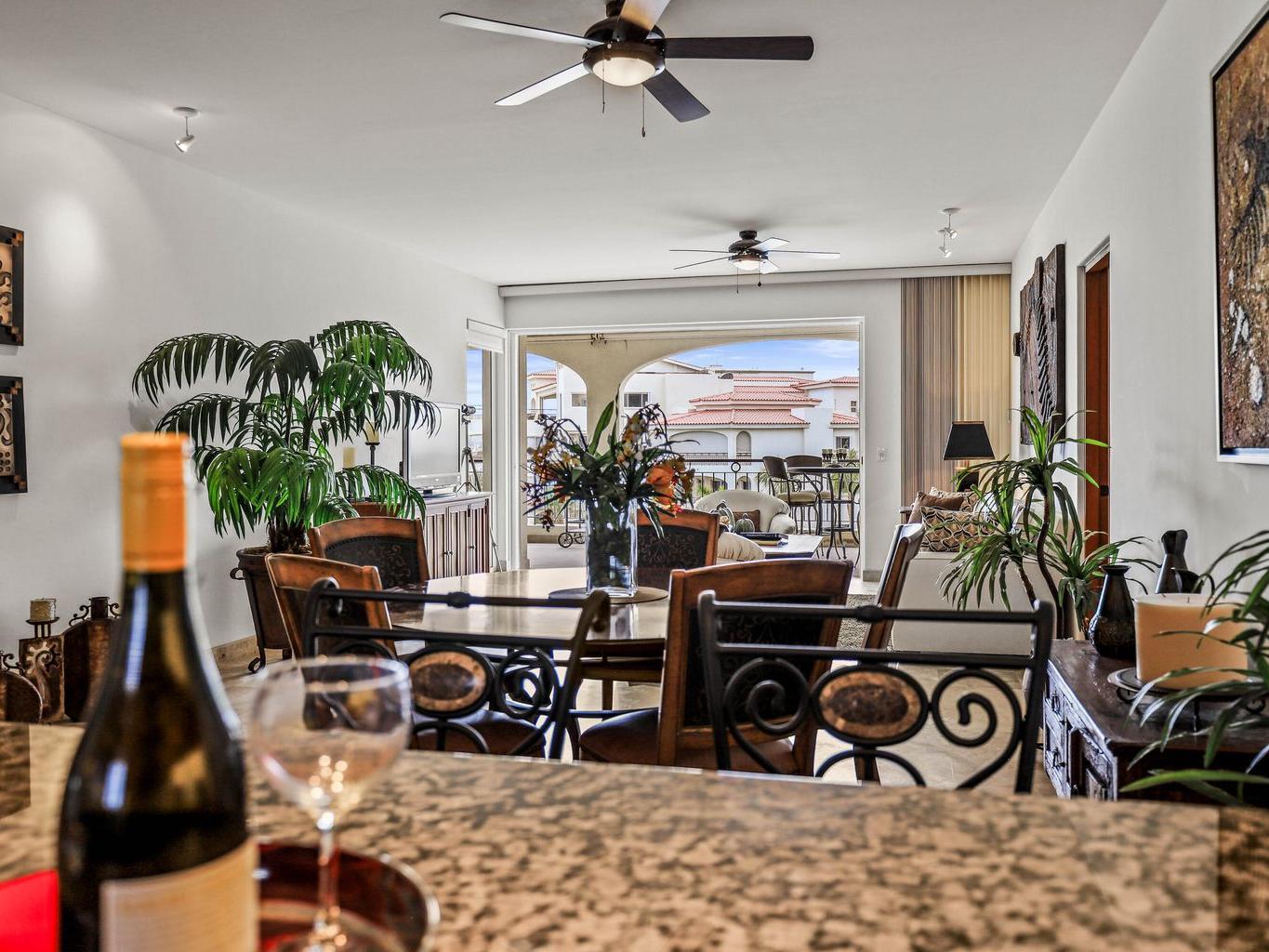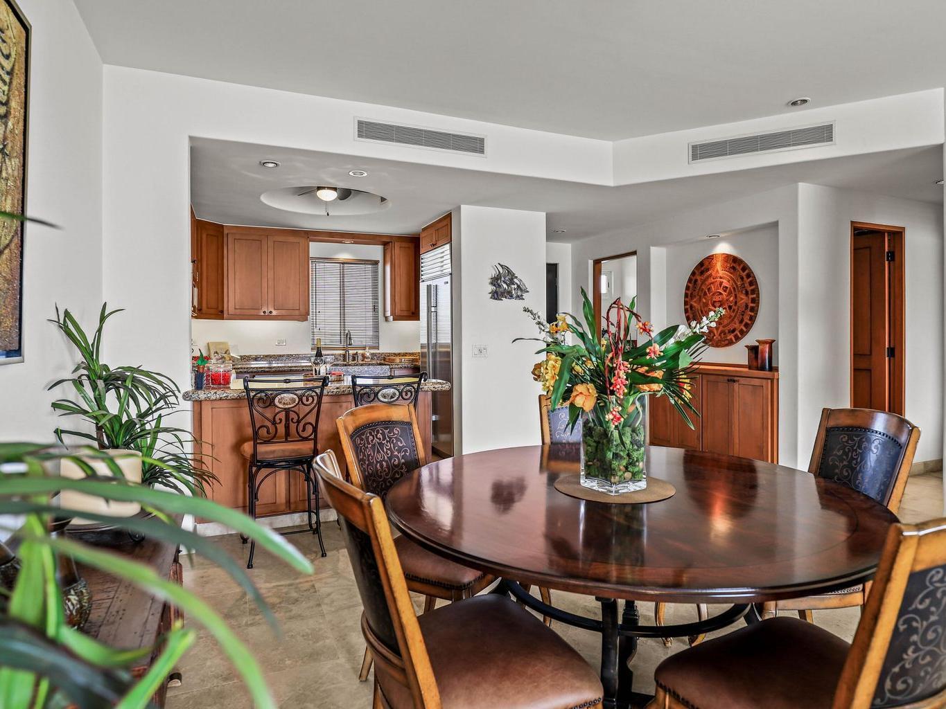Location is everything at upscale, BEACHFRONT, TORTUGA BAY. #1503 is a 2 BD/2BA on the 5th floor of the 1st phase of this exclusive enclave of 33 luxury condominiums, Generous 2000 sq ft floor plan is bright and airy. Pocket doors open indoors out to the covered patio. Perfect for year round enjoyment. Views to the west & Palmilla point. Open concept great room. Modern kitchen w/ Viking,Sub-Zero, appliances, custom walk in pantry. Large primary suite has a dedicated office space & ensuite BA has a walk in closet.