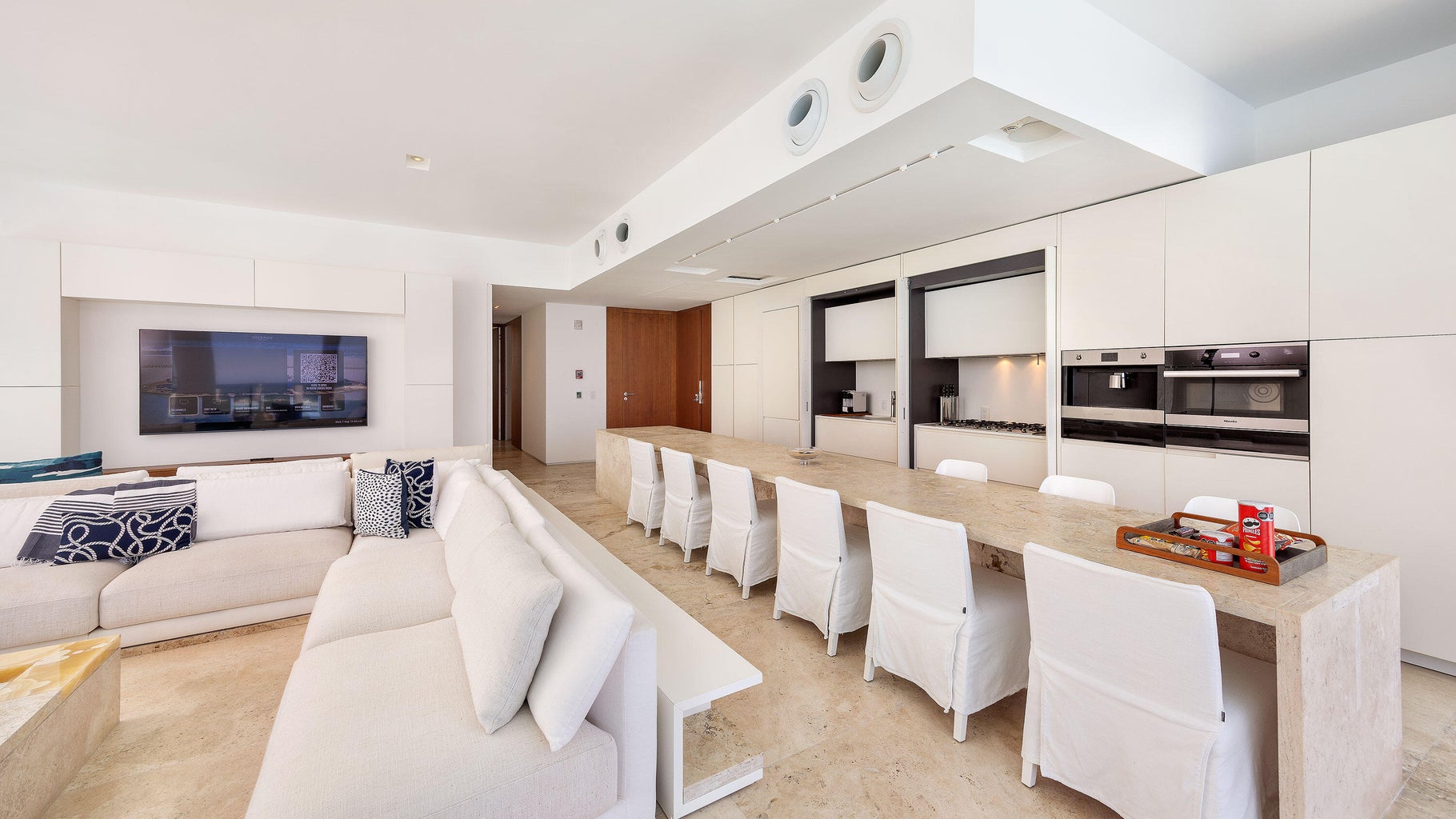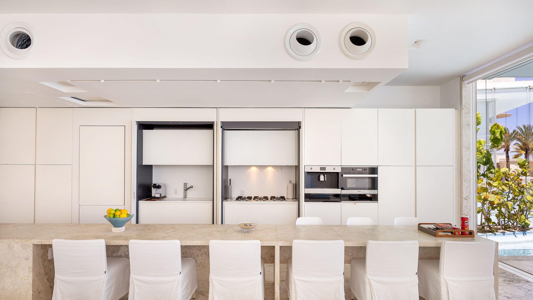 This villa comes fully furnished, complete with Italian custom made cabinetry throughout, plush linens, and a kitchen equipped with Miele appliances throughout, including coffee maker, fridge freezer, oven, gas hob, dishwasher, washer and dryer.