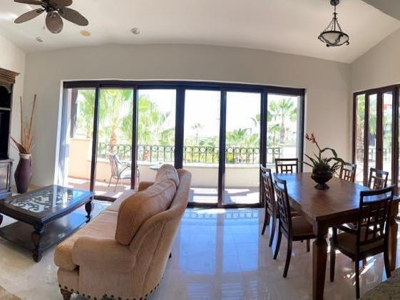 Penthouse unit with spectacular views across the Club Campestre Golf Course and San Jose del Cabo to the Sea of Cortez and Punta Gorda. Enjoy sea views from the terrace, kitchen, dining room, living room and Master Bedroom. The unit is fully furnished and ''move in'' ready. Two deeded underground parking spots and a large underground storage cabana convey with the condo. An elevator takes you from the underground parking to your front door. Enjoy sea views by day, and the twinkling lights of San Jose del Cabo by night from your terrace. Benefit from a very well-run HOA that has its own staff and healthy reserves. Villas de Mexico, an exclusive low-density community with 28 units, offers amenities including a large community swimming pool, Jacuzzi, lushly landscaped gardens, firepit, BBQ