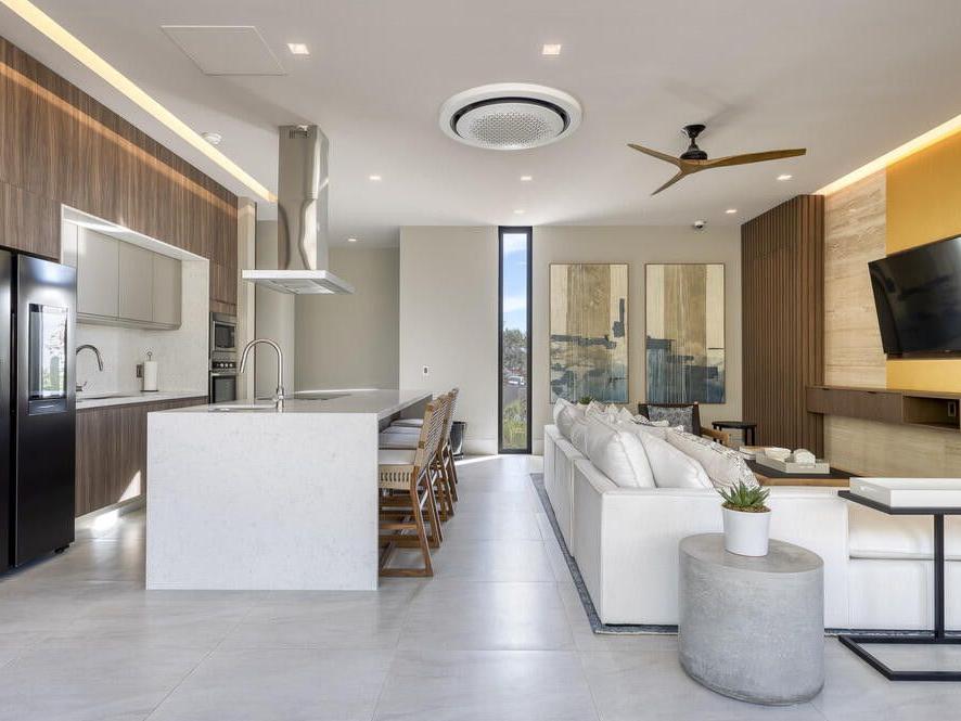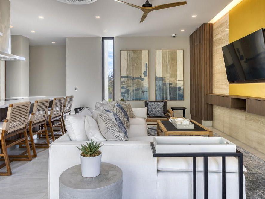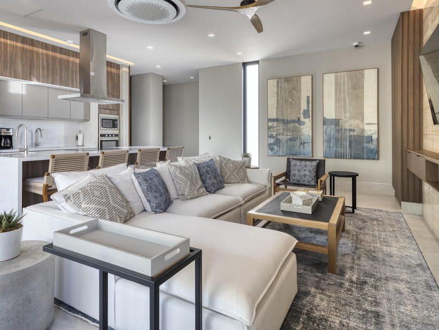 Welcome to your stunning penthouse oasis at Wen Living San Jose, where luxury and breathtaking views converge in the heart of San Jose del Cabo. This exquisite top-floor condo features four spacious bedrooms and four and a half elegant bathrooms, providing a lavish sanctuary with sweeping ocean views from both balconies and multiple rooms. Enjoy picturesque vistas of the golf course and majestic mountains that enhance the serene ambiance of your living space. This thoughtfully designed penthouse boasts expansive living areas that seamlessly blend modern elegance with comfort.