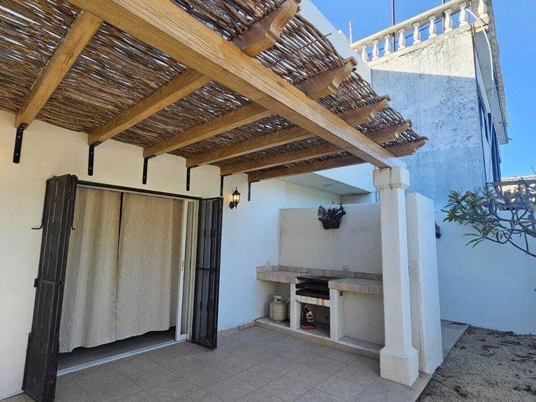 Selling price in pesos for $6,000,000 MXN.. Charming Two-Story Home in El Rosarito, San Jose del Cabo. Discover this inviting two-story home located in the tranquil and well-connected community of El Rosarito, just off Retorno del Tifón in San Jose del Cabo. Featuring a classic Baja-style facade with clean lines, a tile roof, and ironwork window detailing, this property blends comfort, security, and charm.