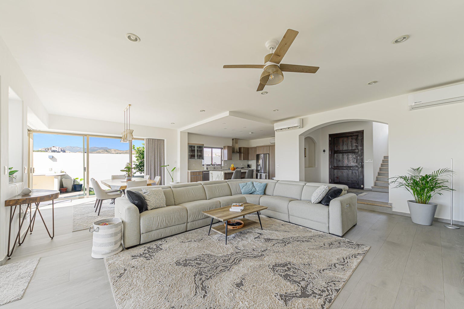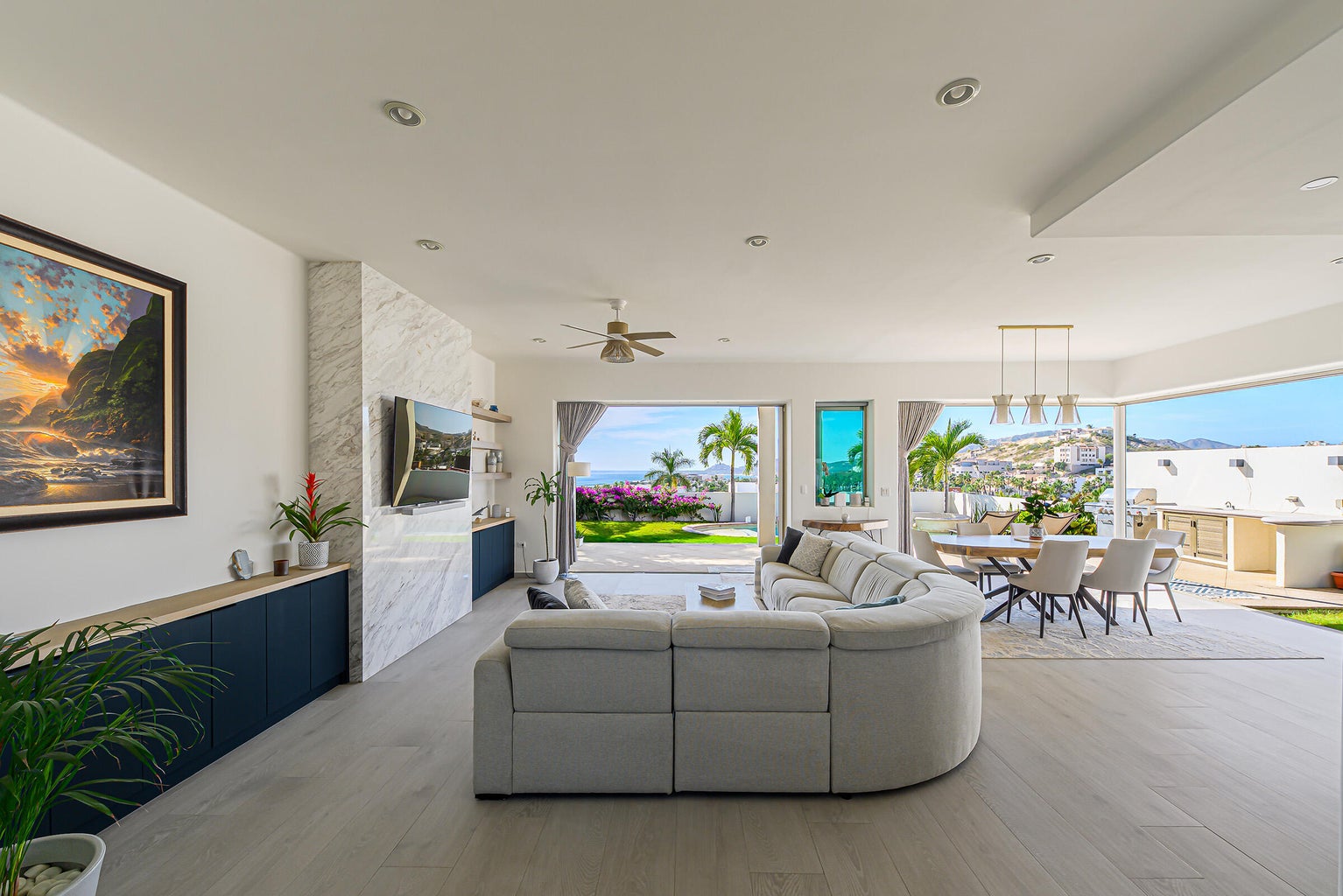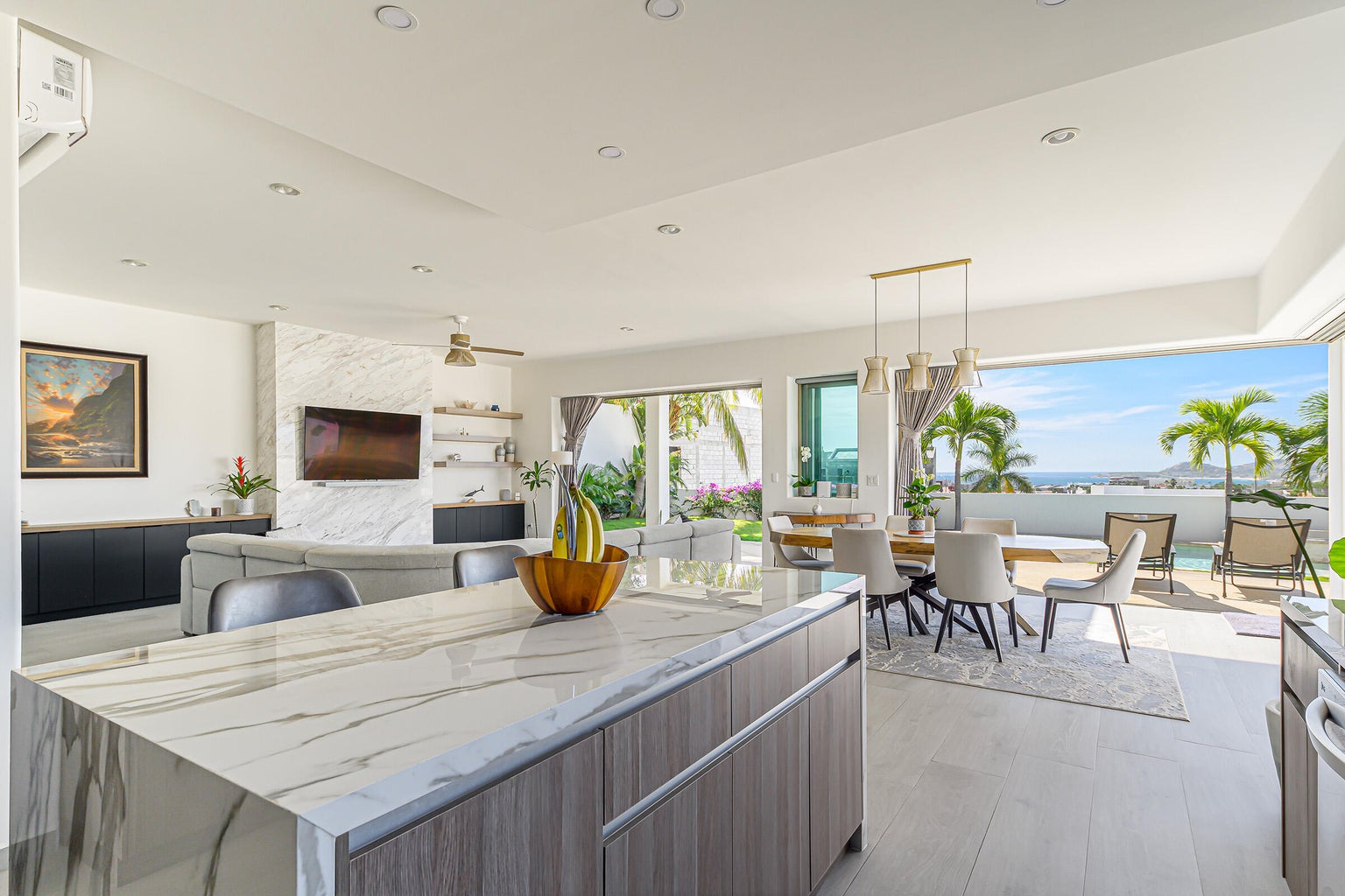 The property is located on a 530 SM lot with views of the San Jose coast and mountains, offering 301 SM of air-conditioned space and 77 SM of terraces. Additional conveniences include a three parking garage and proximity to schools, grocery stores, a golf club, and the beach.