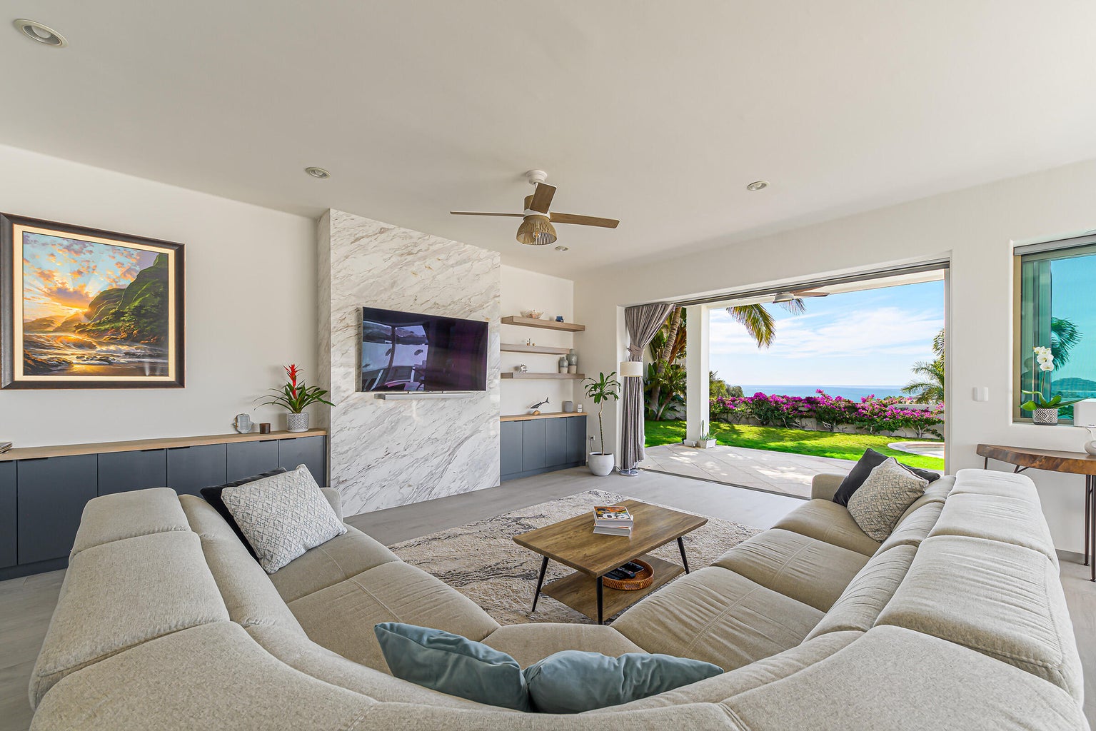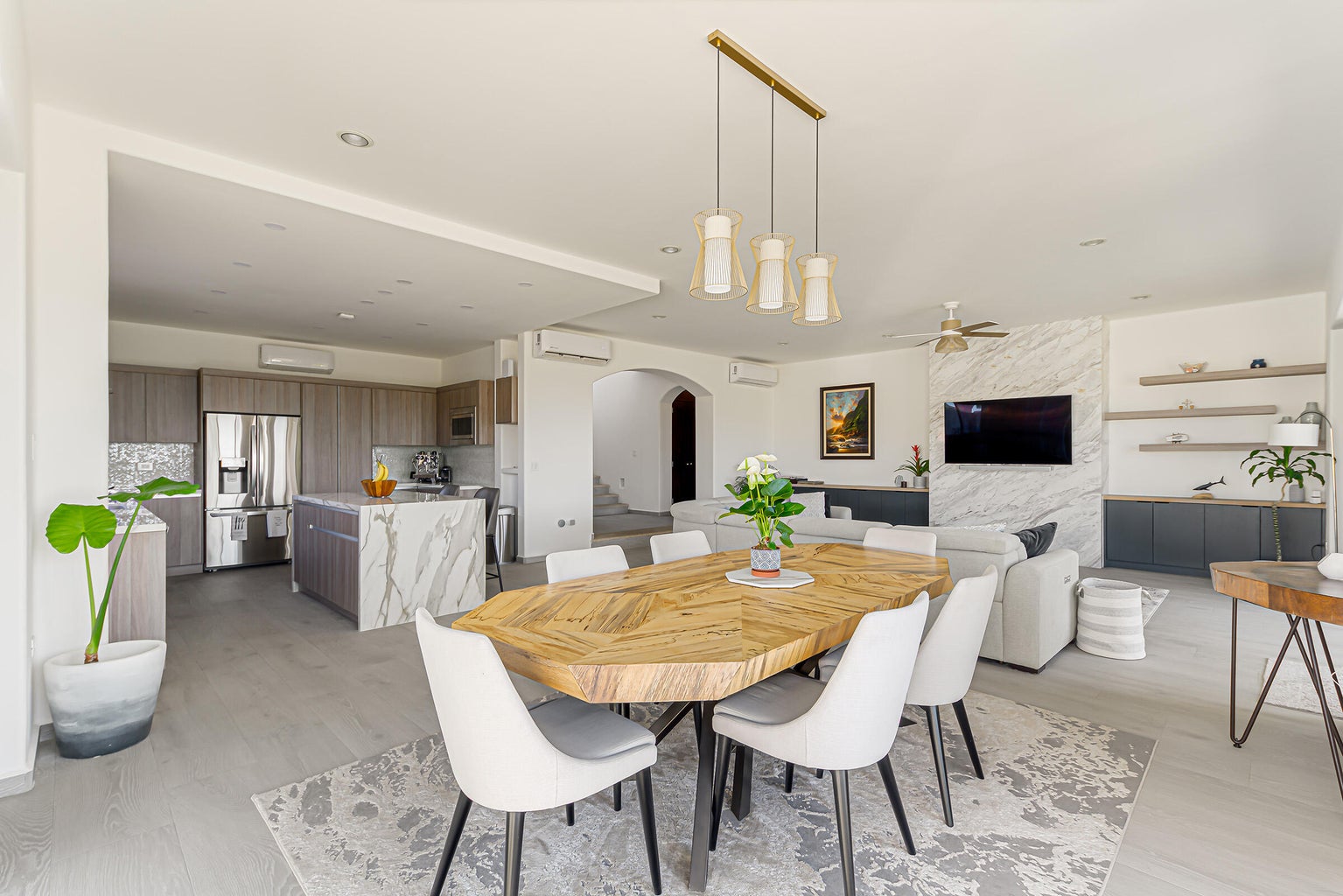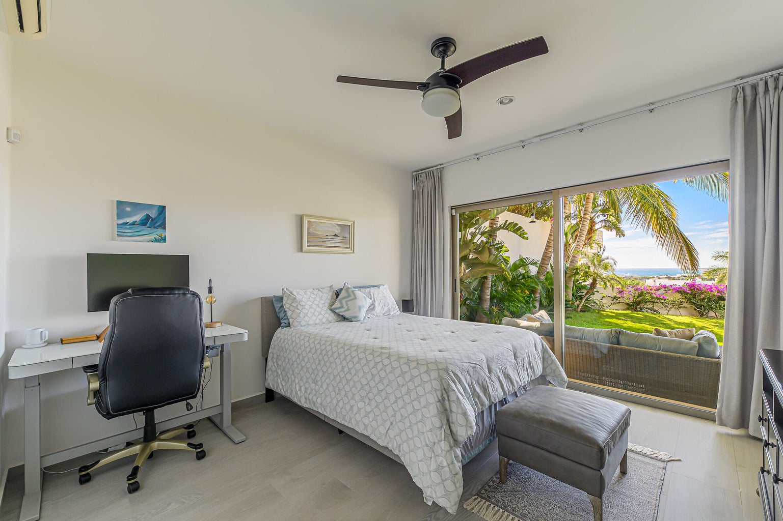 The property is located on a 530 SM lot with views of the San Jose coast and mountains, offering 301 SM of air-conditioned space and 77 SM of terraces. Additional conveniences include a three parking garage and proximity to schools, grocery stores, a golf club, and the beach.