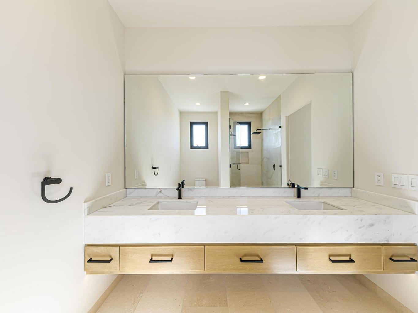 Canadas 28 is a newly built home in Las Canadas Uno, thoughtfully designed by Custom Design and Construction of San Jose del Cabo. Centrally located within the gates of Club Campestre, a private master-planned, low-density 500-acre community. This two-level contemporary residence offers 3,200 square feet of air-conditioned living space on a 446-square-meter (4,800-square-foot) homesite. Sweeping views of the ocean to Palmilla Point, golf greens, and lakes are visible from both levels. The home features four bedrooms, a pool, patio area with a grill station, and a gas fire pit, perfect for entertaining. The main living level has large sliding doors, creating seamless living to the pool area. Finishings include travertine floors and custom cabinetry and doors.