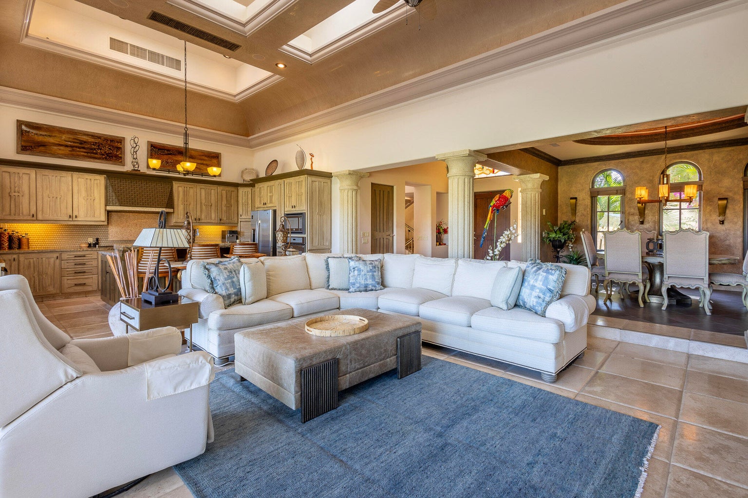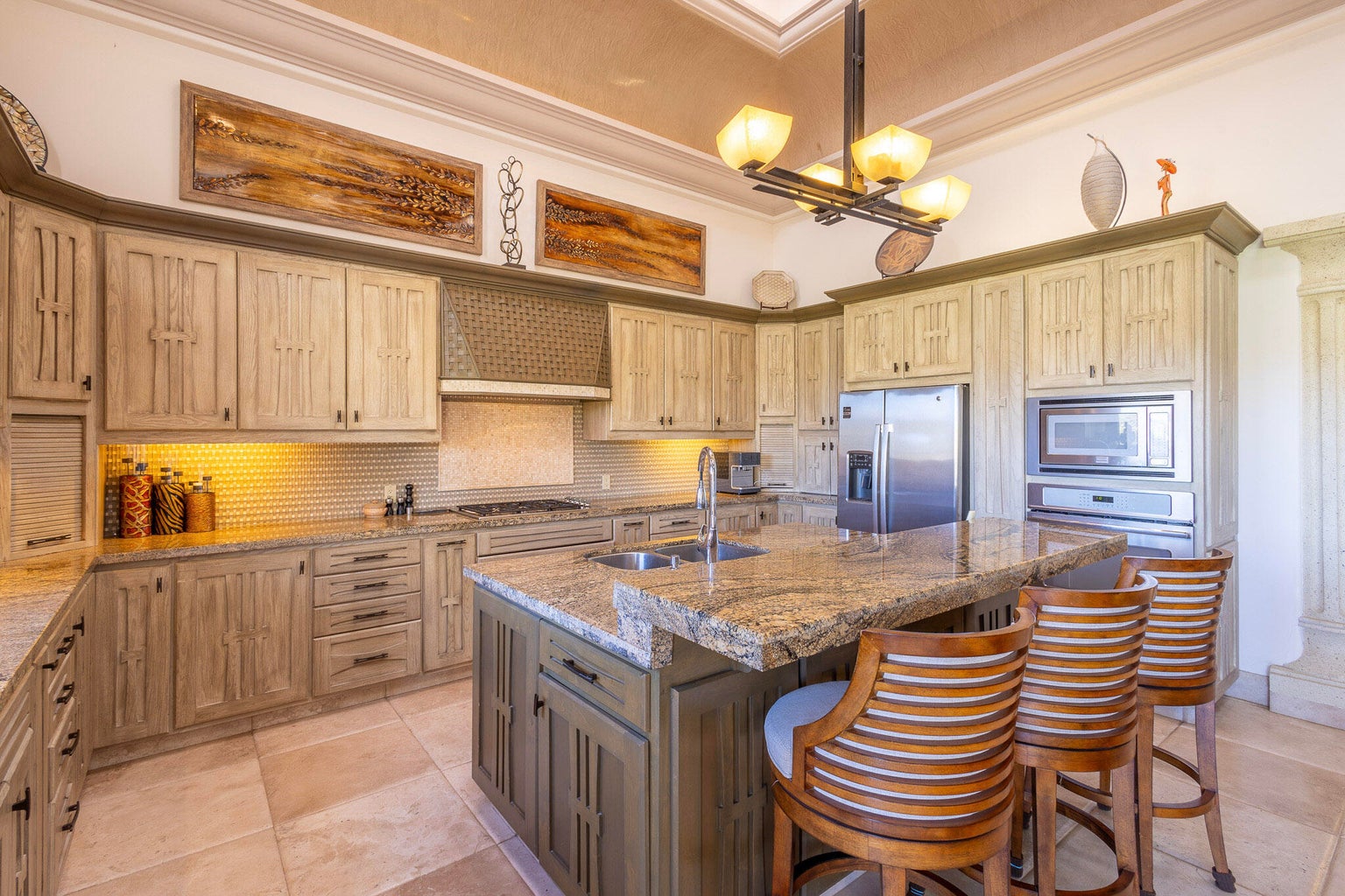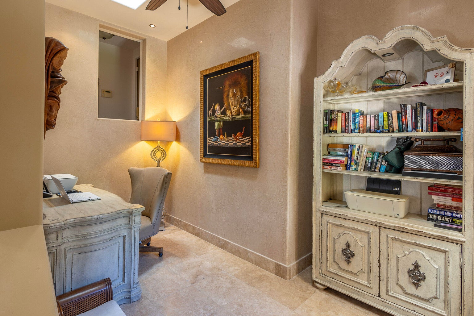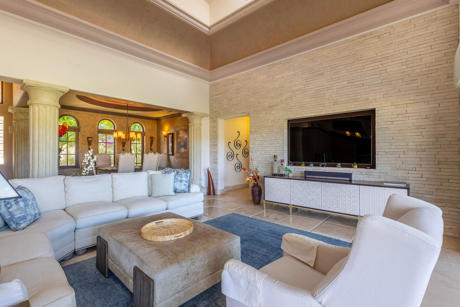 Casa Joya Escondida is a peaceful fairway front retreat in the exclusive La Noria subdivision of Puerto Los Cabos. This 4BR, 4.5BA home boasts vaulted ceilings, abundant natural light, and breathtaking views of six golf fairways. The main level, perfect for single-level living, includes a primary suite with terrace access, a luxurious bath, an open-concept living/dining area, a well-appointed kitchen, a laundry room, and an enclosed office. The lower level offers two bedrooms, a media room with projector, a kitchenette, and a covered terrace leading to the pool, jacuzzi, fire pit, and outdoor living space. Additional features: rooftop terrace with ocean views, oversized garage, generator, hurricane shutters, and cistern. Ultimate privacy and tranquility await...
