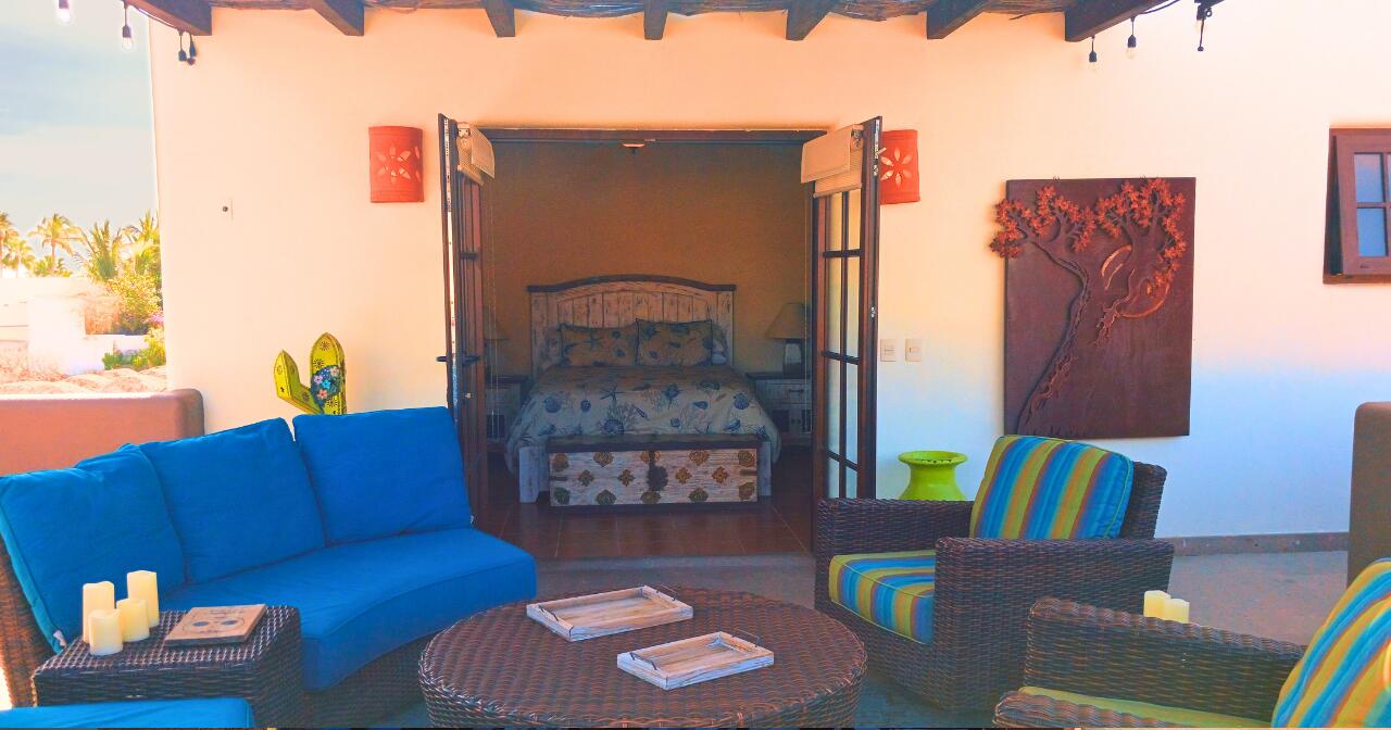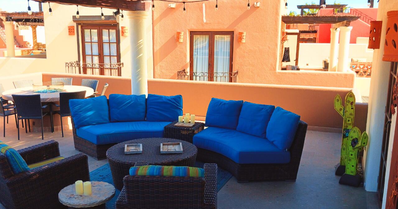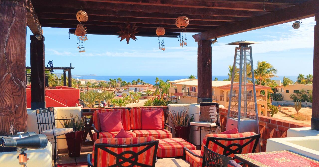 A private third-floor viewing patio with direct unobstructed views to the sea, great for morning coffee and whale watching.