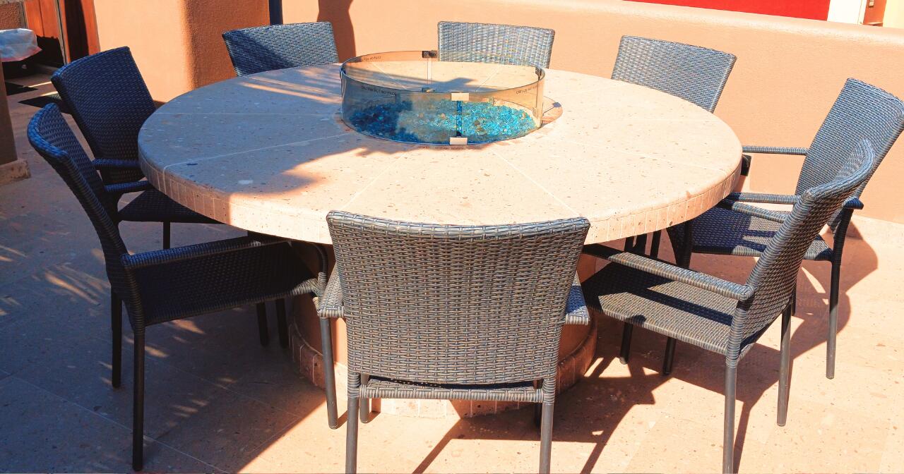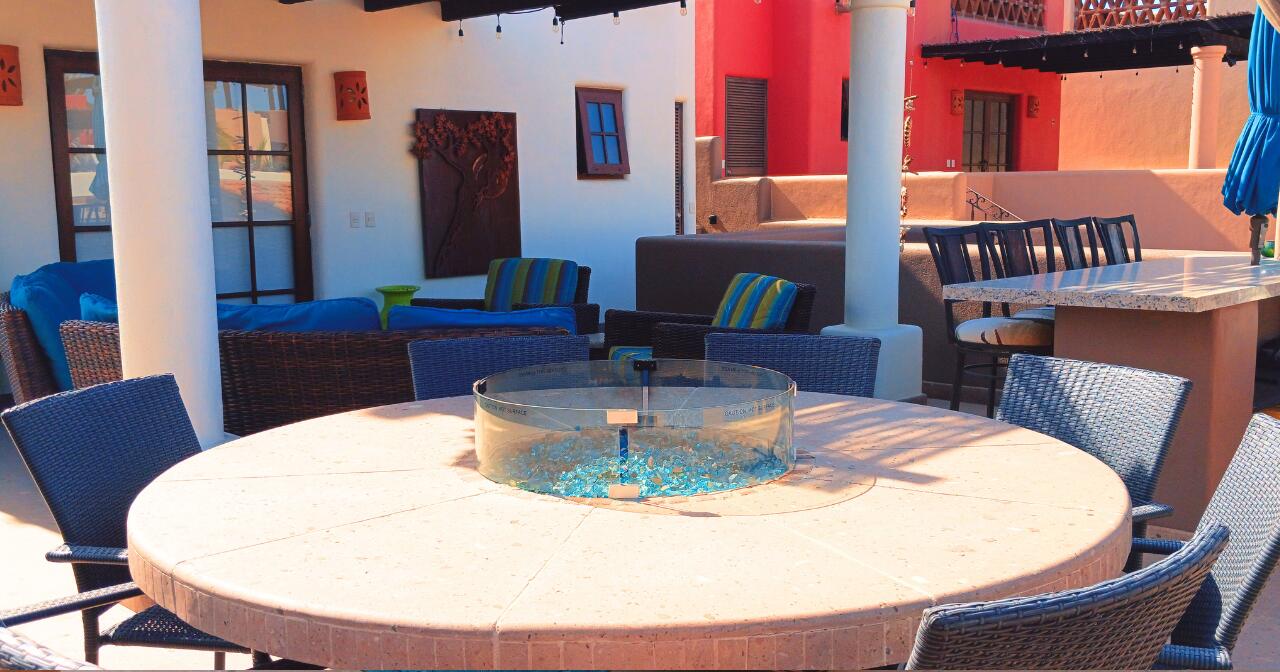 Spacious outdoor patios with a built-in fire table, bar area, and more. Perfect for entertaining!