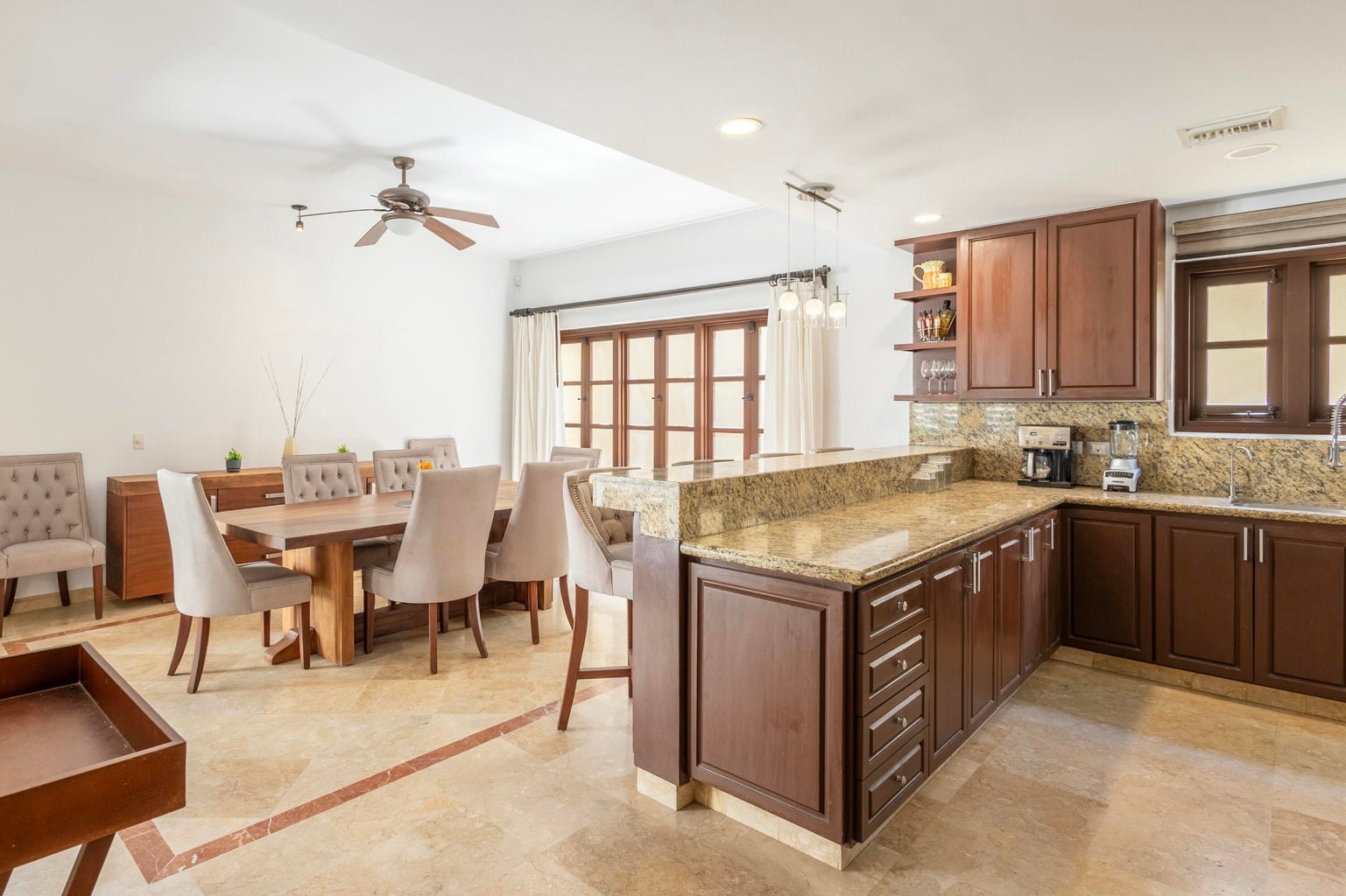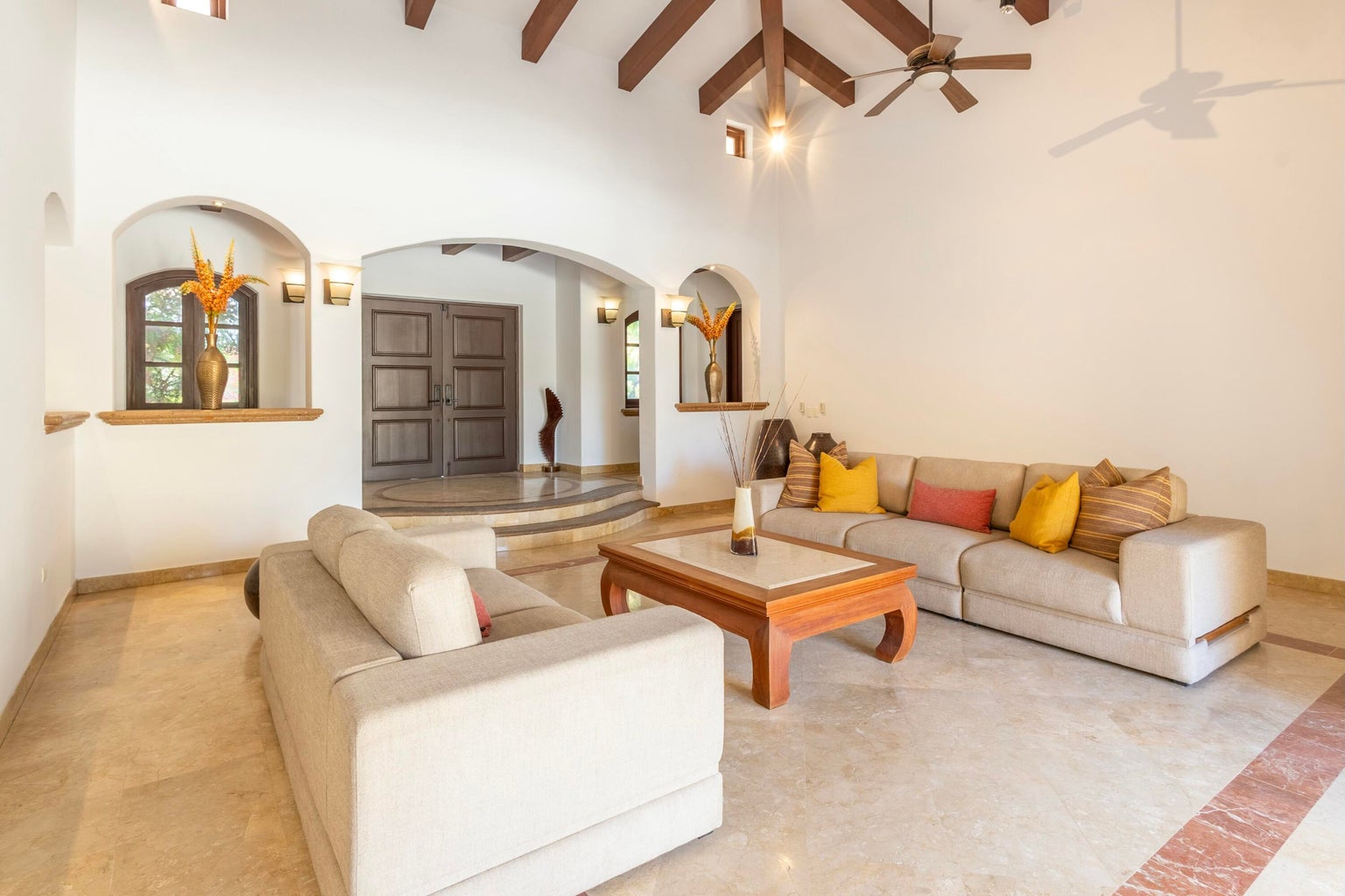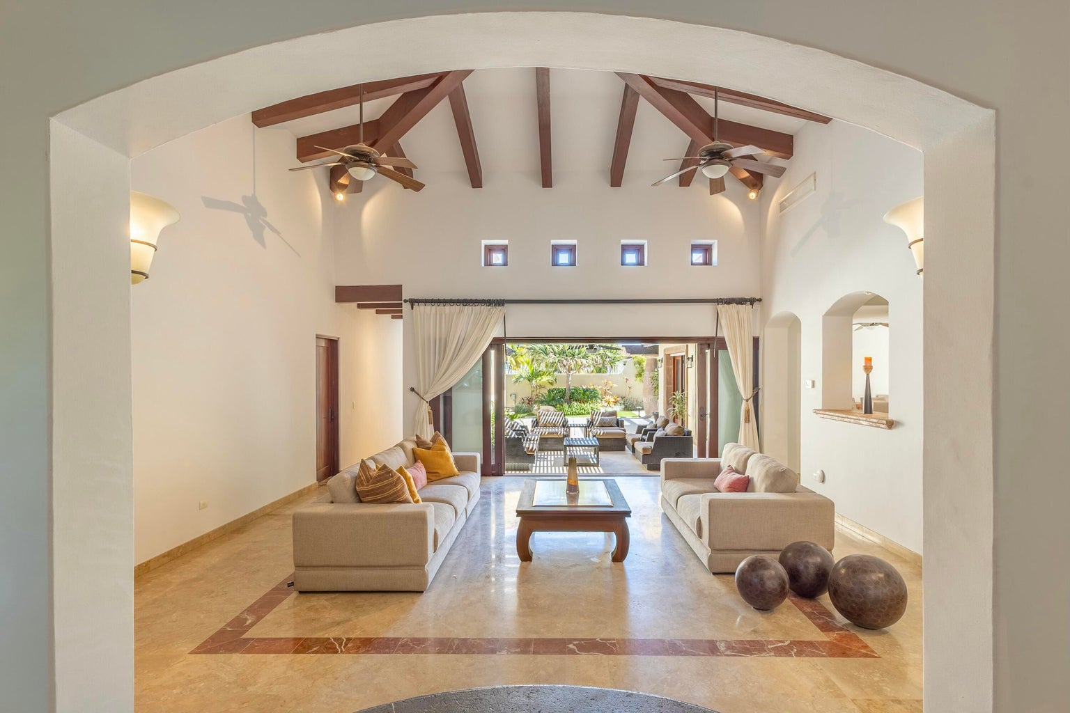 Welcome to Casa Palma, a single level 4-bedroom, 4.5-bath home in the gated community of La Jolla. This beautifully designed property offers 3 bedrooms with en-suites inside and a 4th bedroom with en-suite outside, currently set up as a TV room but perfect for a guest room or a home office.