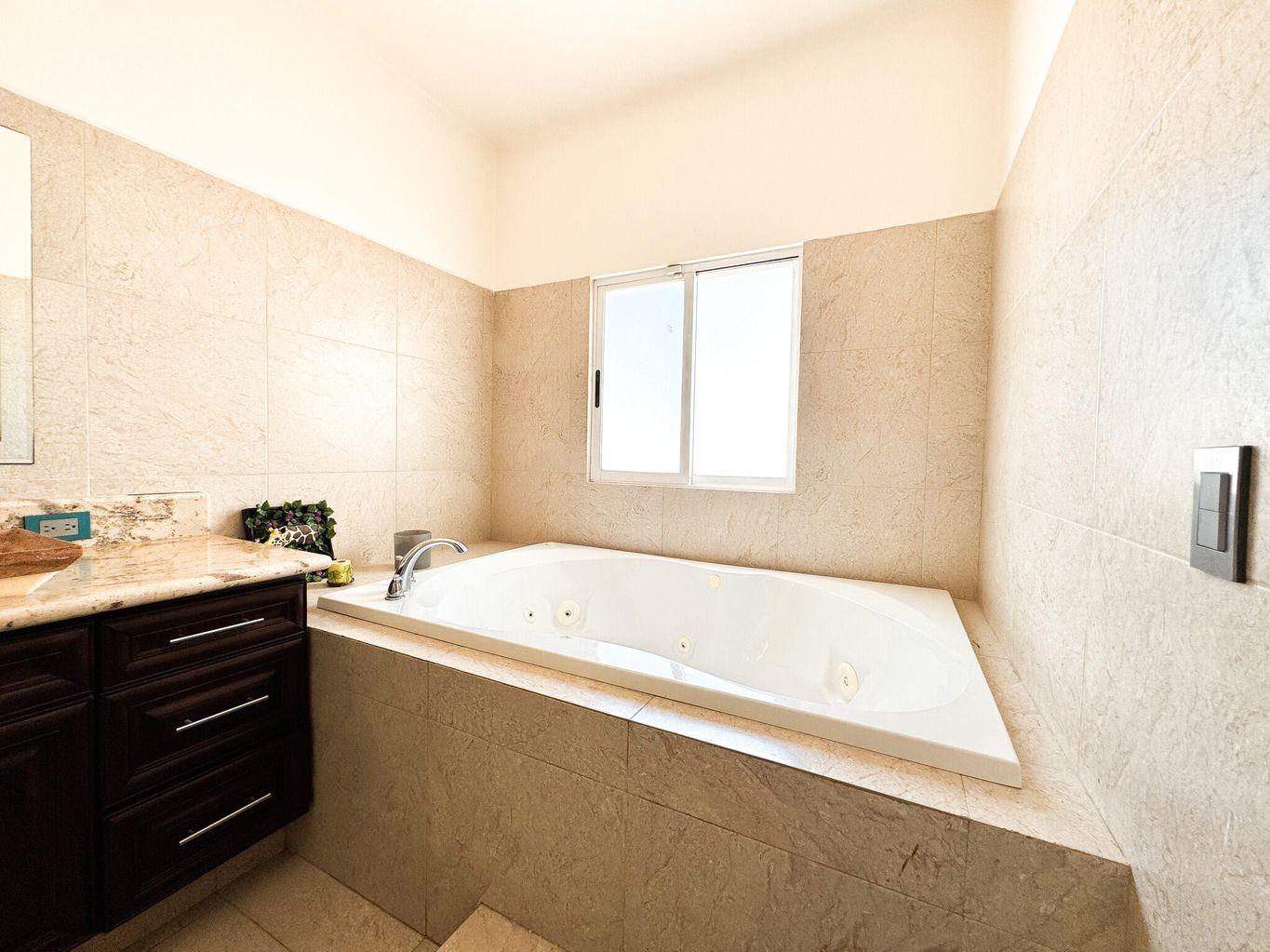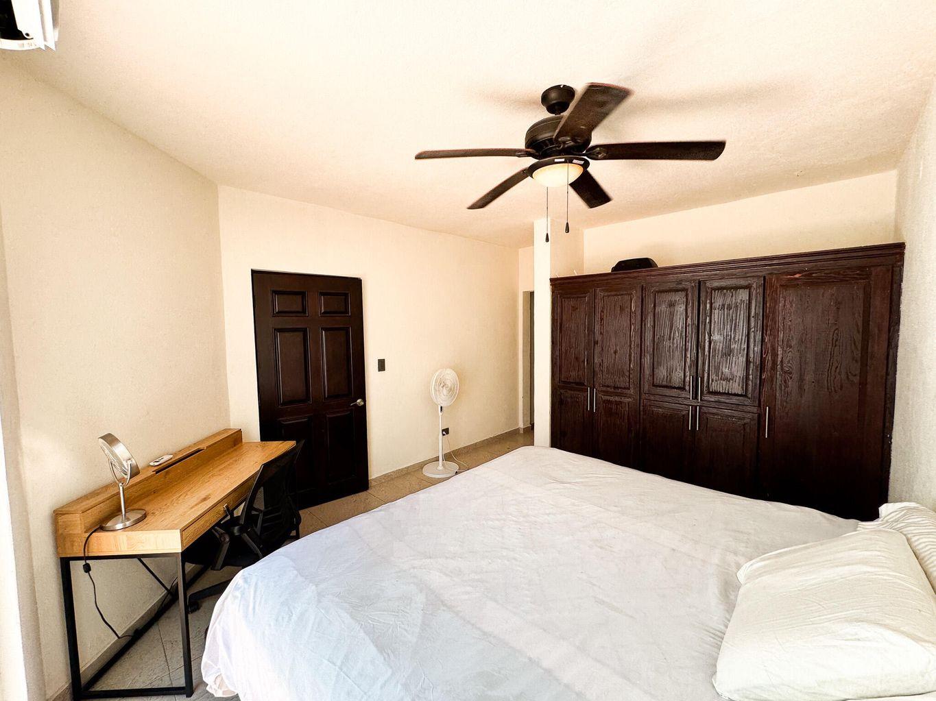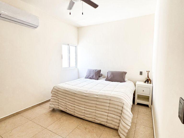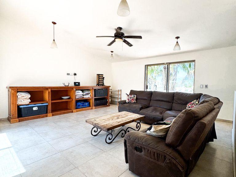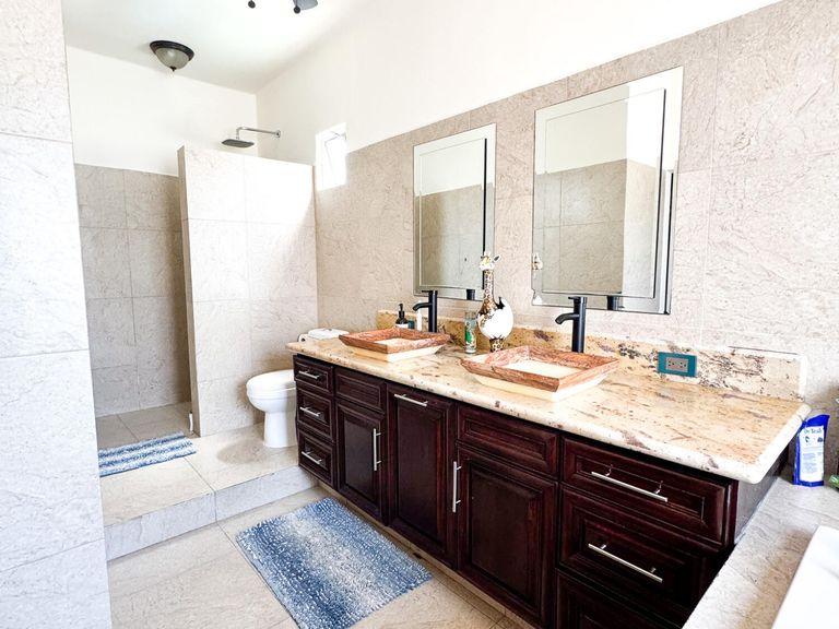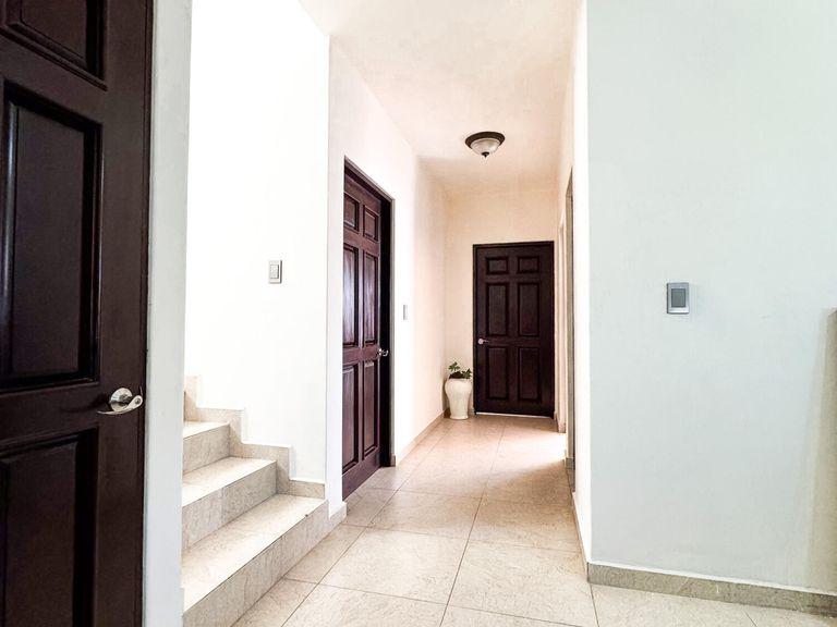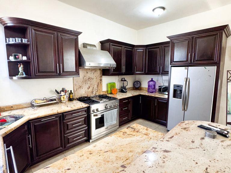 Discover this beautifully remodeled two-story home, nestled in the serene El Chamizal neighborhood of San José del Cabo. Built in 1995, this meticulously upgraded single-family residence boasts 2,464.94 sq ft of living space on a 2,152.78 sq ft lot. The first floor features three spacious bedrooms and two full bathrooms, while the second floor houses the main bedroom complete with a walk-in closet. The home includes a wine cellar or pantry, a spacious living room, and a modern kitchen, offering a perfect blend of comfort and luxury. Conveniently located near stores, banks, and restaurants, this property is a true gem in a highly desirable area.