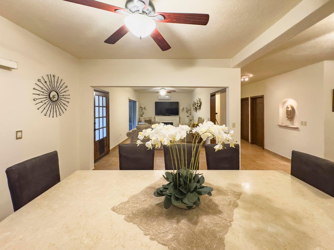 CASA ALEGRIA es una encantadora propiedad que trasmite tranquilidad y armonía en un entorno perfecto para disfrutar en la familia. Cuenta con una espectacular alberca y una relajante cascada rodeadas de un acogedor y lindo jardín. Con tres amplias habitaciones en el segundo piso y una habitación en planta baja, cada una diseñada para ofrecer confort y privacidad, esta casa es perfecta para crear recuerdos duraderos. Además, cuenta con un cuarto de servicio con baño y una cocina espaciosa. La luminosidad inunda cada rincón de este hogar creando un ambiente cálido y acogedor. Ubicada en una excelente zona de San José del Cabo, disfrutarás de la tranquilidad y cercanía a servicios y atractivos locales. No pierdas la oportunidad de vivir en este paraíso. ¡Agenda tu visita hoy mismo!