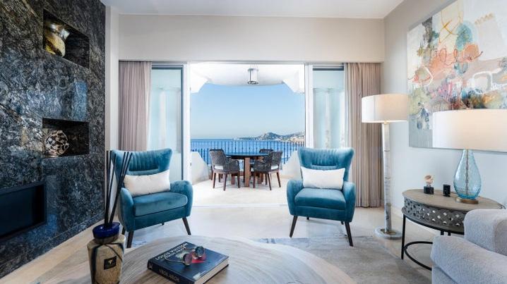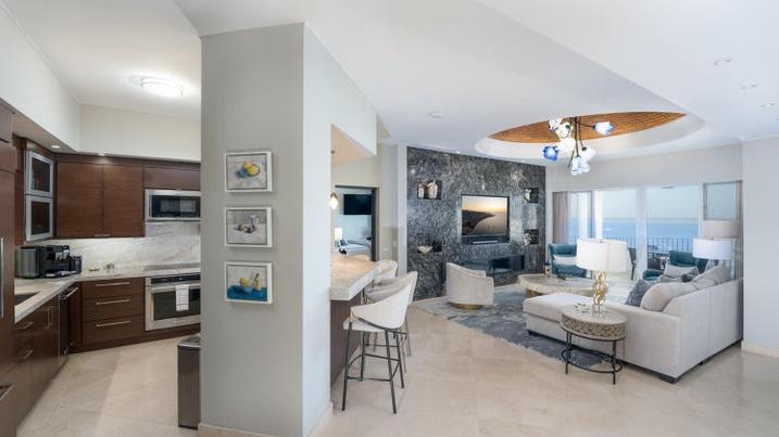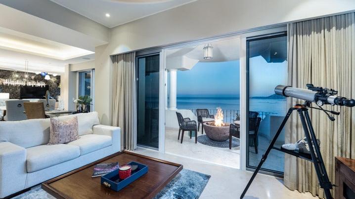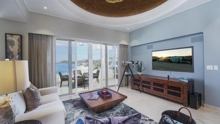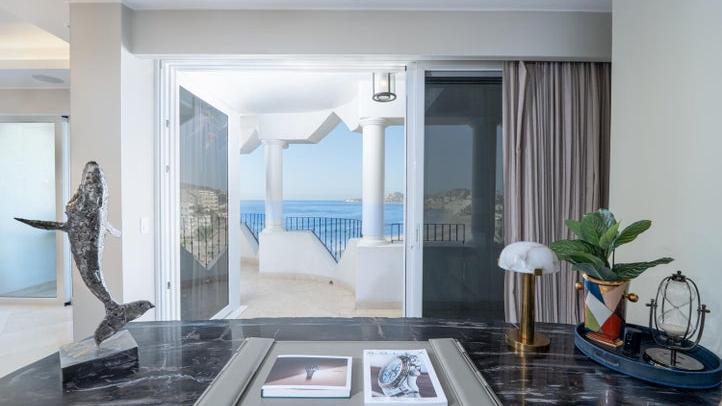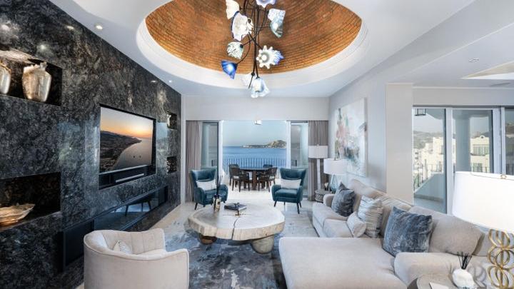 High above the shoreline of the San Jose Del Cabo Corridor, a penthouse at Mykonos frames uninterrupted westward vi...