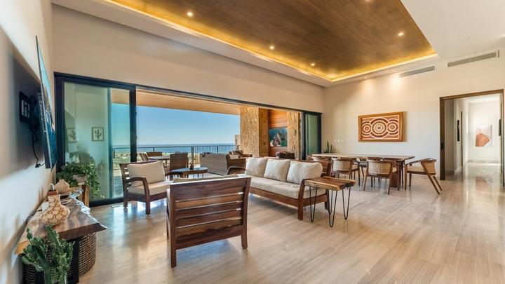 Enjoy a majestic view from the 6th floor of this 4 bedroom luxury penthouse in the Alvar community in Quivira Los Cabos....