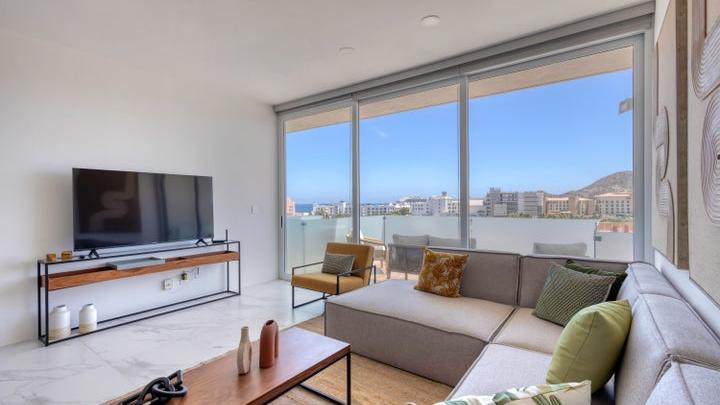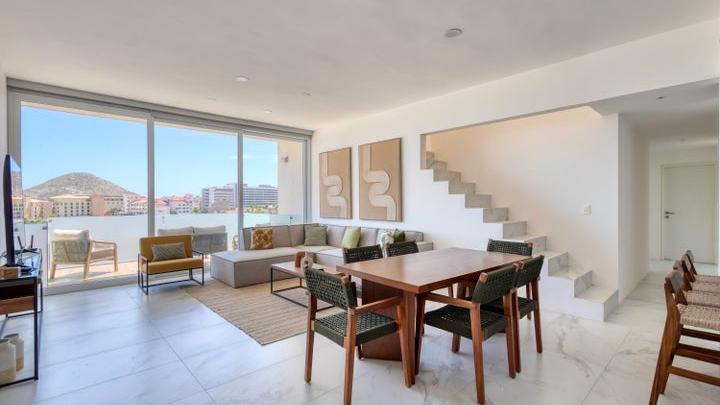 Modern 3-bedroom penthouse located on the 6th floor of Marea Los Cabos, offering a prime central location in Cabo S...