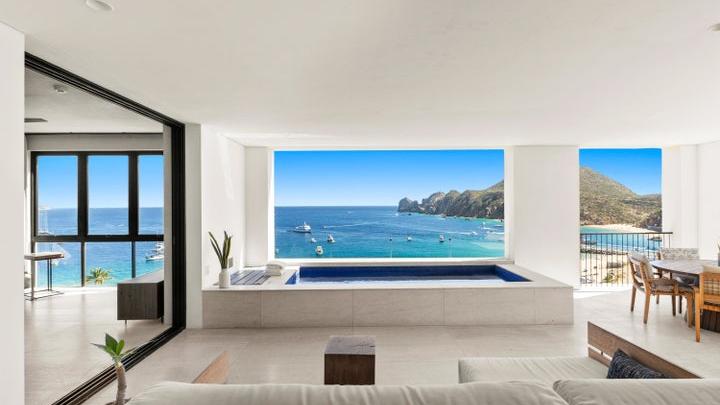 Perched on the 5th floor, this stunning 2-bedroom residence with a den at 1 Homes Cabo offers breathtaking views of...