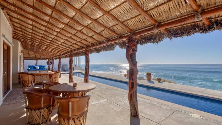Positioned along the pristine shores of Zacatitos in the East Cape, this refined beachfront residence captures swee...