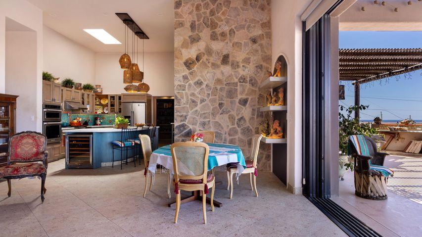 Step inside Casa Bohemia, where artistry meets Baja's natural beauty. This custom crafted Santa Fe-style home in Todos S...