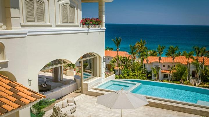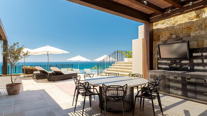 Casa Amore, a five-bedroom, four-full and four-half-bathrooms villa, is perched on a hilltop with views of the Sea...