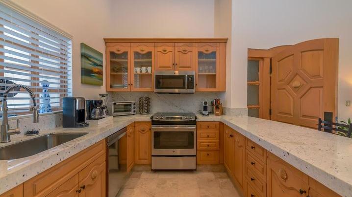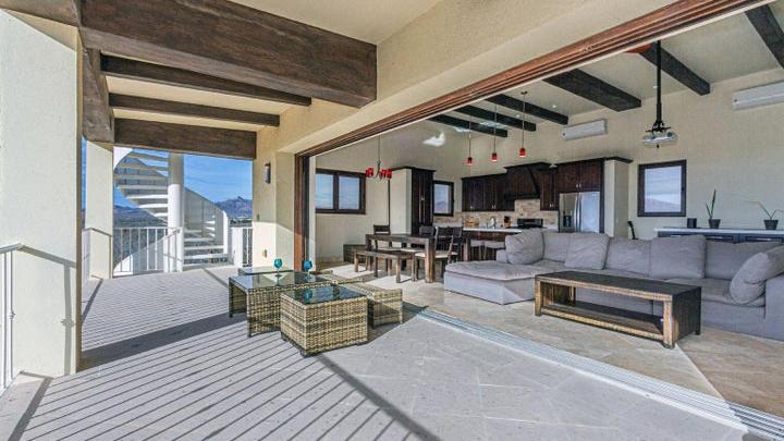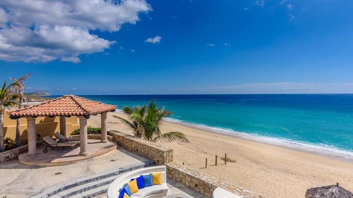 This coveted ground floor villa is steps from the sparkling Sea of Cortez and Medano beach. Located within Villa L a Est...