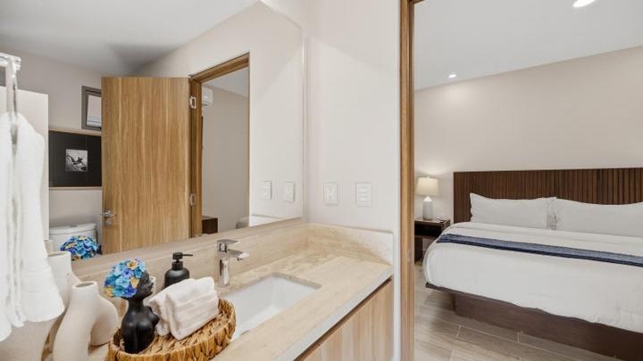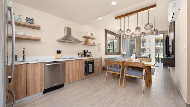 This 99 m² condo in Cabo San Lucas features a sleek, modern design. The open-concept layout seamlessly blends the kitche...