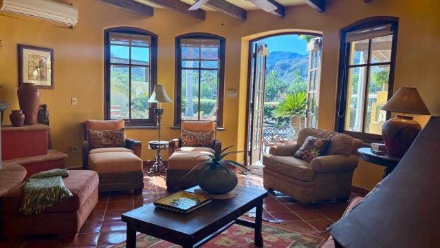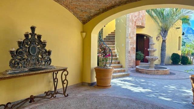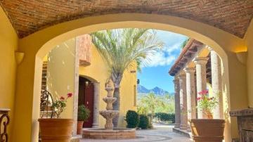 Step through the grand entry into a stunning interior courtyard framing endless views of the Sierra La Giganta and...