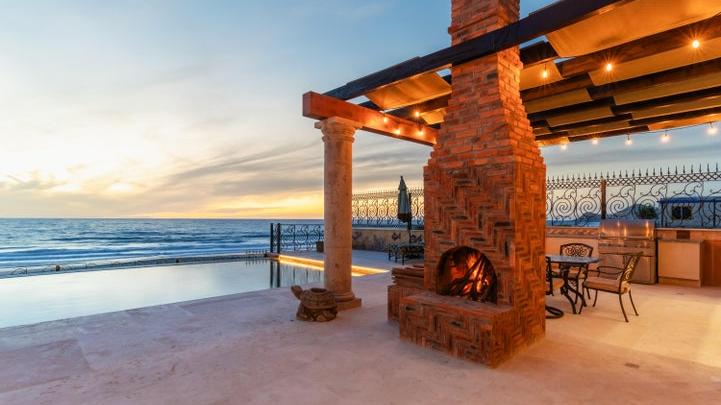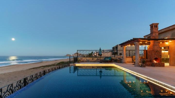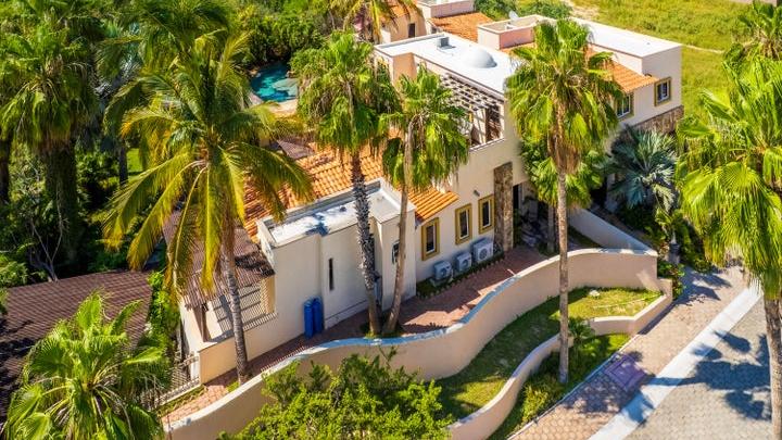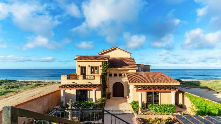 Oceanfront hacienda-style estate perched above Cerritos Beach in the planned community of Tortuga del Sol, offering...