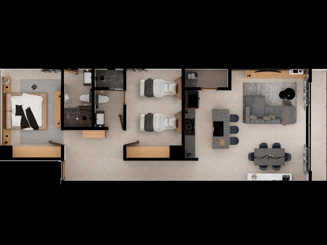 Torre Altamar is an exclusive development in Cabo San Lucas with spectacular views of the Arch. It features 2-bedroom, 2-bathroom apartments with modern finishes. Amenities include a gym, coworking space, elevator, parking, and a rooftop with an infinity pool and grill area, perfect for enjoying unique sunsets.