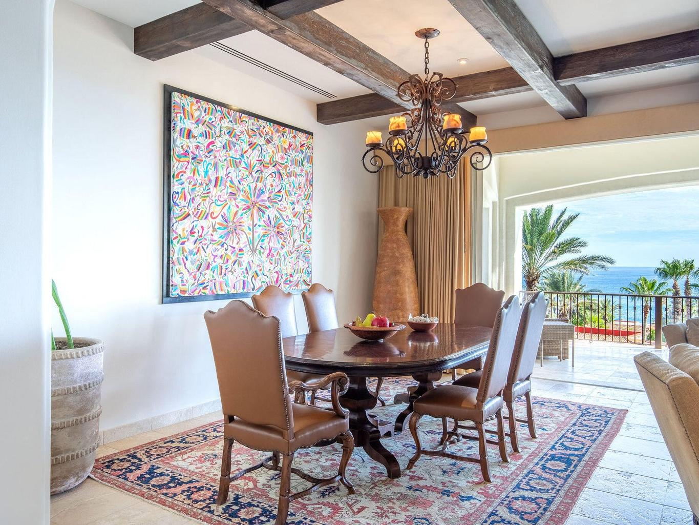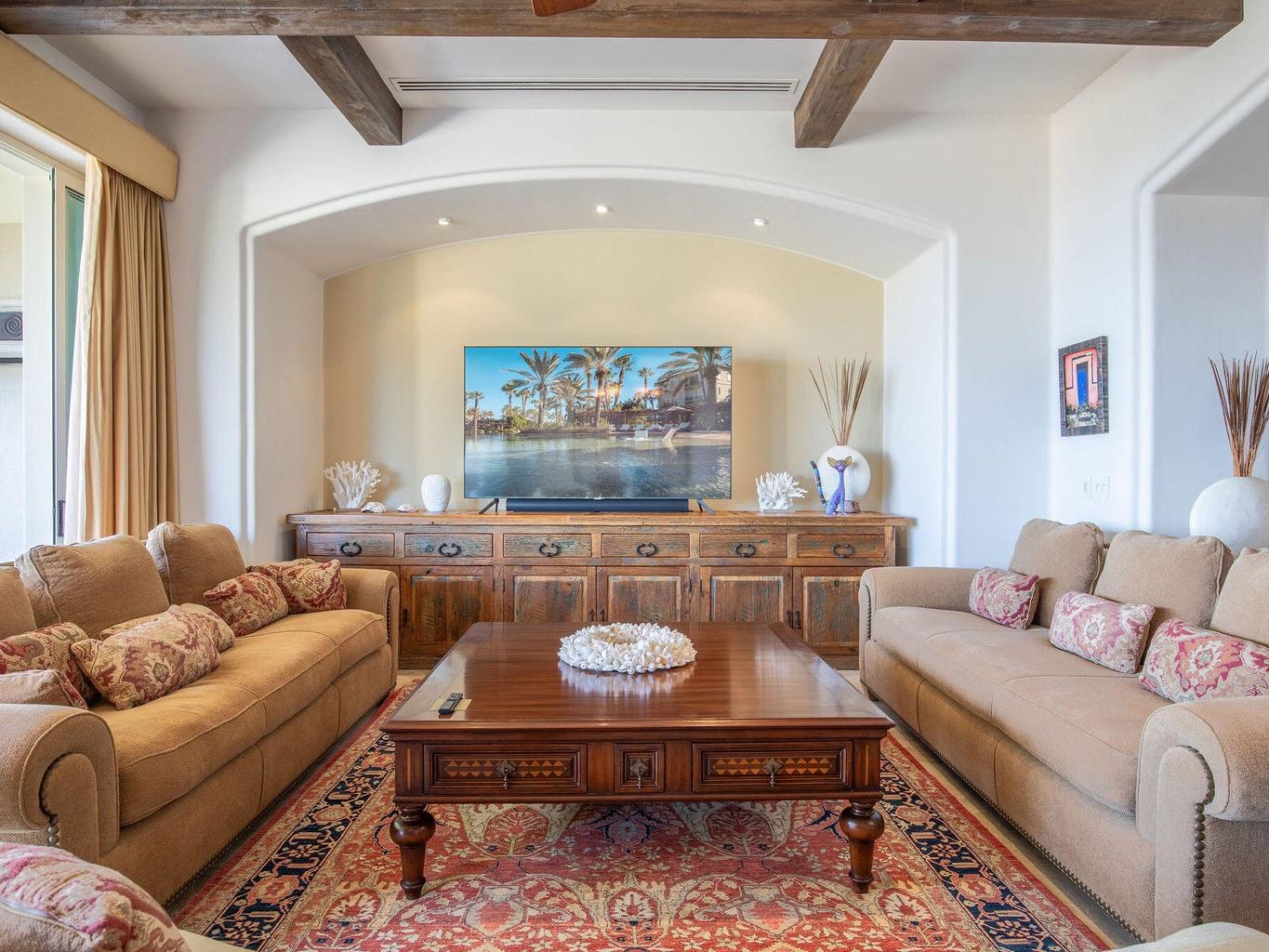 Thoughtfully designed the home features rich, dark wood tones, striking beamed ceilings, and warm natural textures that create a refined yet inviting atmosphere. The interiors balance luxury with timeless craftsmanship, appealing to buyers who value architectural detail, quality materials, and Mexican elegance. Fully furnished and offered turnkey, the residence is ideally suited for