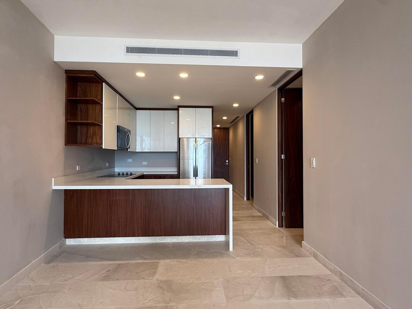 Refined finishes throughout include marble flooring, quartz kitchen countertops, and custom pine cabinetry with Parota veneer, offering a sophisticated blend of elegance and durability.