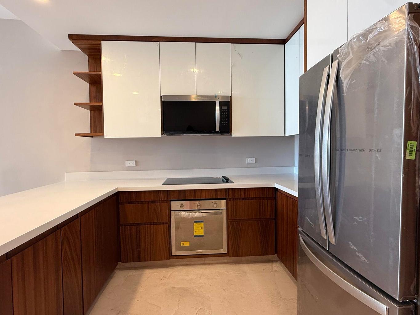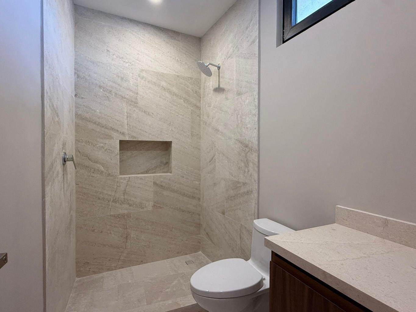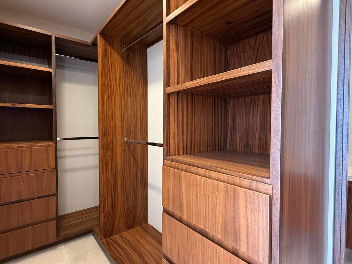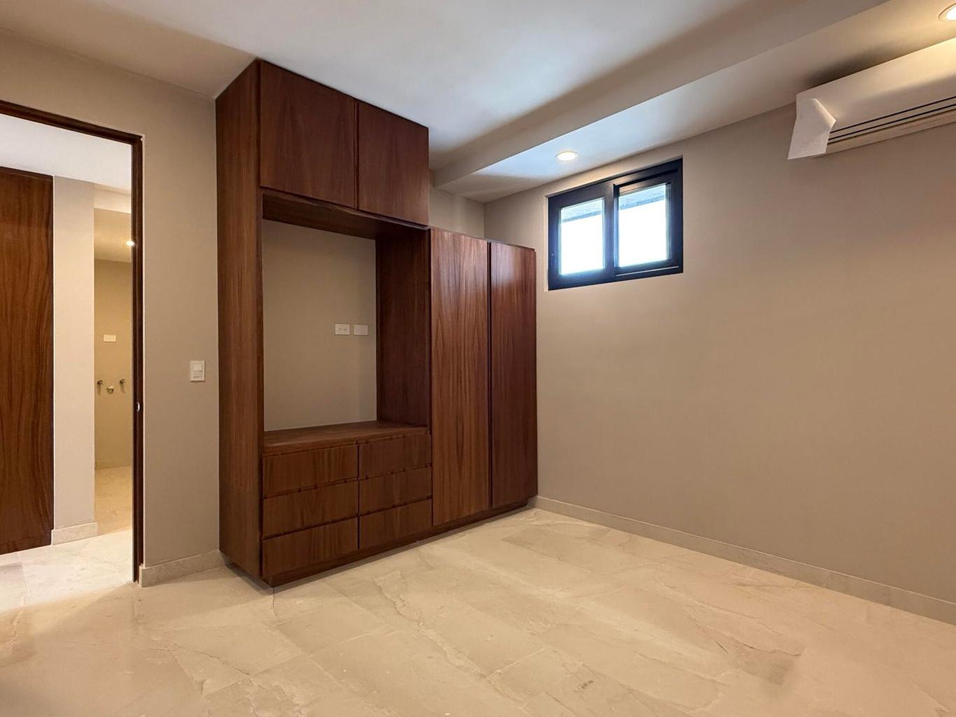 Refined finishes throughout include marble flooring, quartz kitchen countertops, and custom pine cabinetry with Parota veneer, offering a sophisticated blend of elegance and durability.